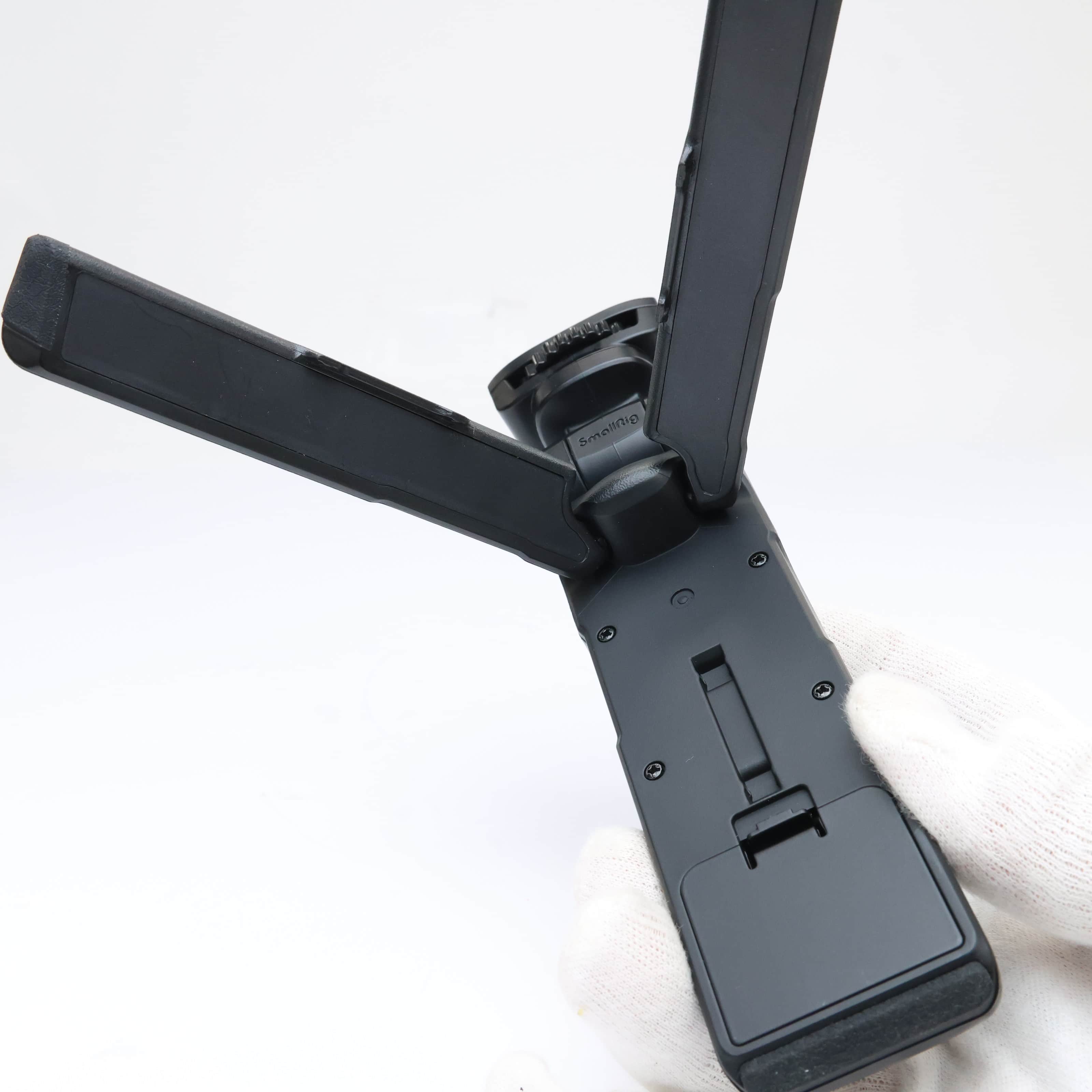 SmallRig社のトライポッドグリップと、リモコン ML-L7のセット。手持ちでの動画撮影時にグリップとして使用すると、ハイアングルでの撮影や自分撮りがより容易に行えます。