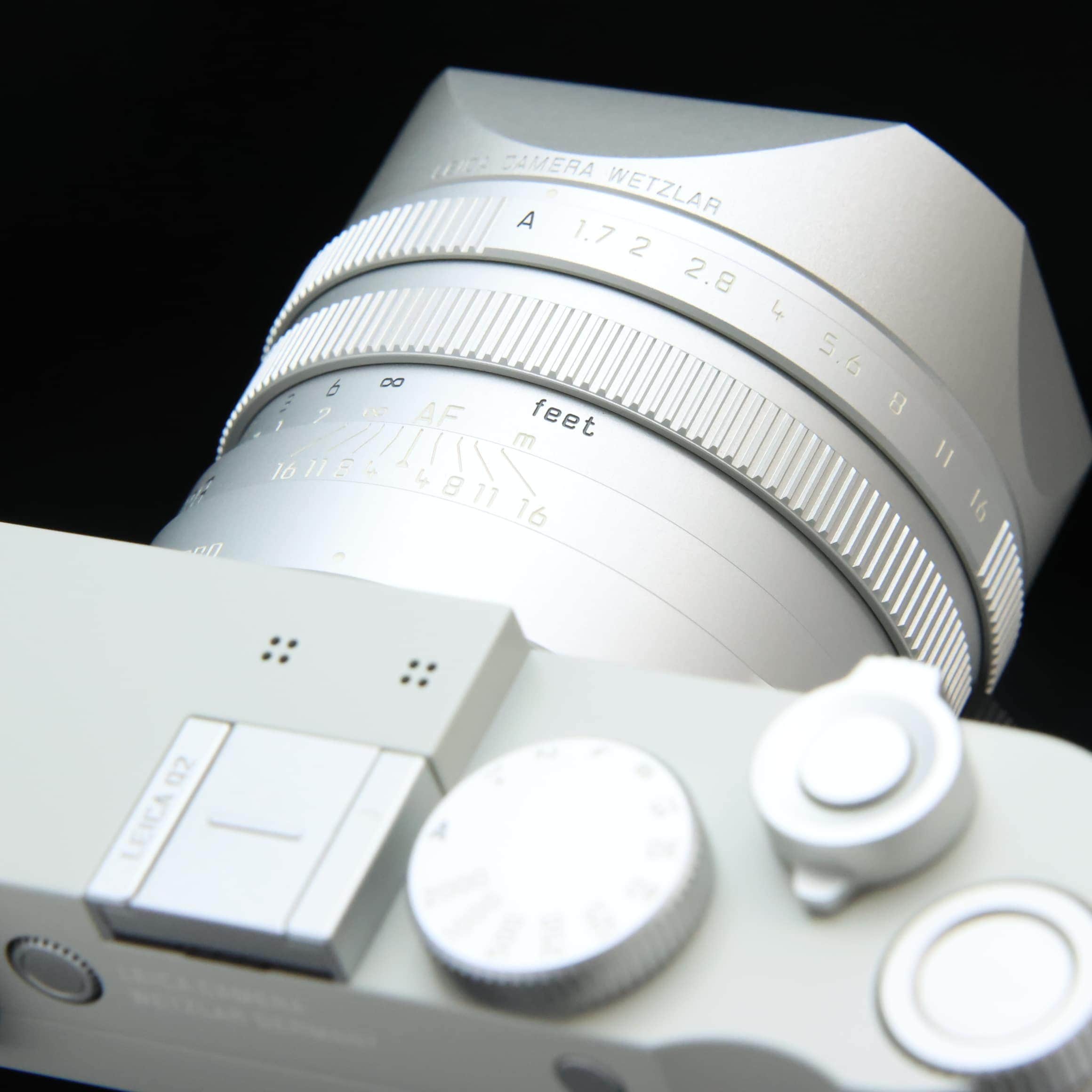■主な特徴「ライカ Q2」の撮像素子には、有効4730万画素の35mmフルサイズセンサーを採用しています。細部まで鮮明な静止画や4K動画が撮影できるほか、最高ISO感度50000までの高感度撮影も可能です。レンズには、「ライカ ズミルックス f1.7/28mm ASPH.」を採用しており、高性能な撮像素子との組み合わせにより、優れた描写性能を発揮します。開放F値がF1.7と明るく、光量が少ないシーンでも美しく撮影できます。これらの特長から、ストリート写真から建築写真、風景写真、ポートレート写真まで、幅広い用途で活躍します。ピント合わせの方法は、マニュアルフォーカス(MF)またはオートフォーカス(AF)が選択できます。また、最短撮影距離17cmのマクロ撮影も可能です。これらの機能を駆使すれば、さまざまな状況下で創造力を自由に発揮して撮影できます。レンズの鏡筒には、AF/MFの切り替えをロックできる便利なボタンと、回転させるだけでマクロモードに切り換えできるダイヤルがあります。