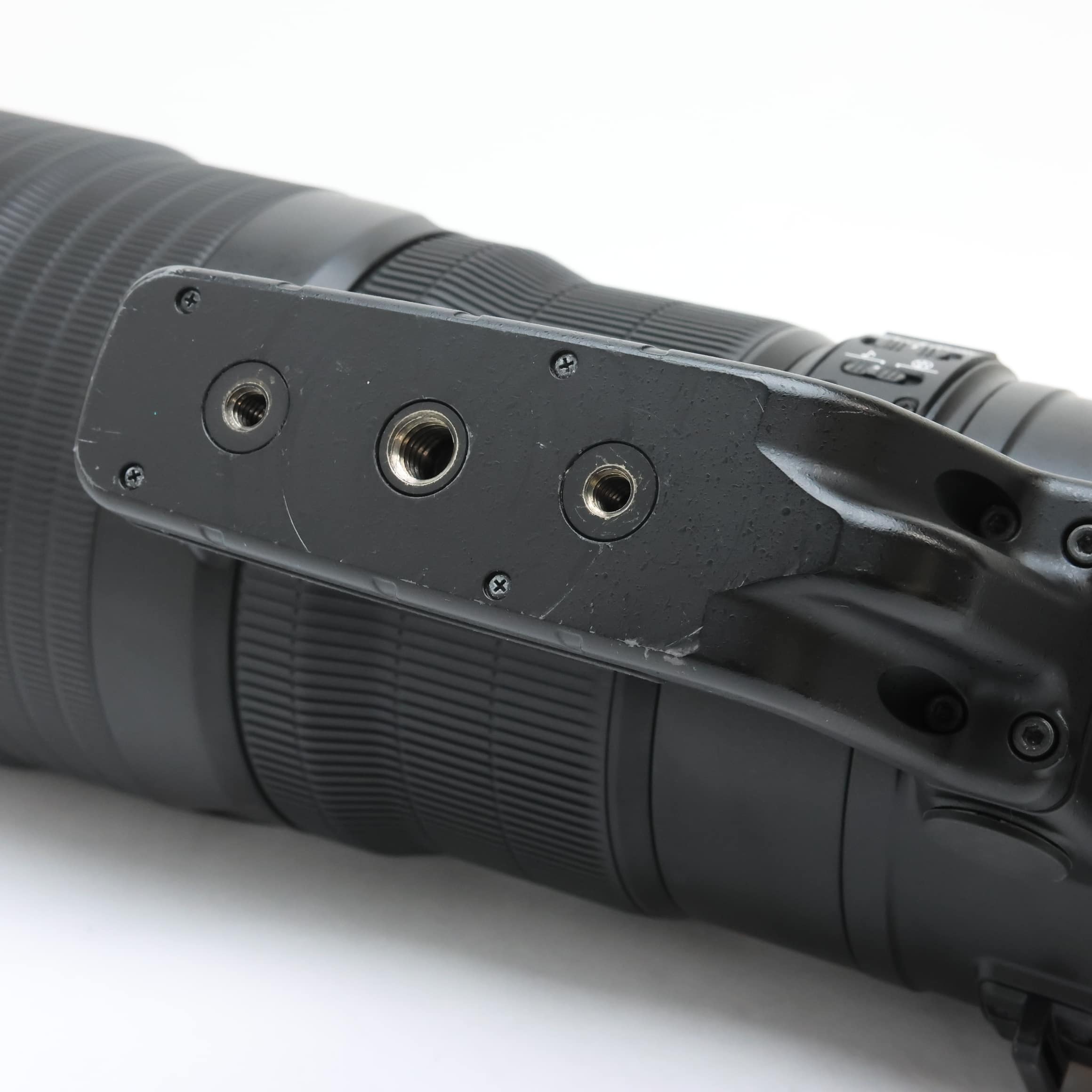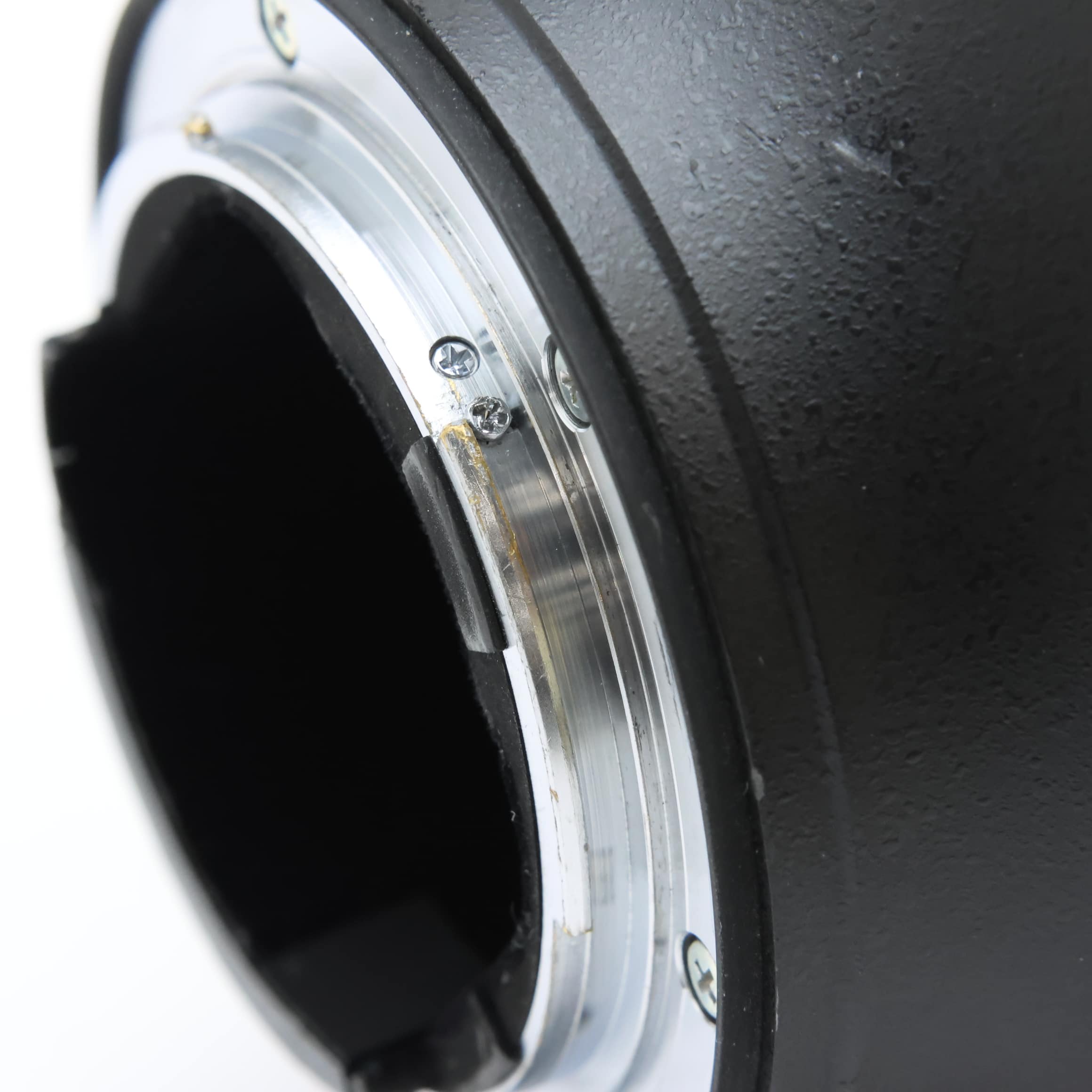 【外観】スレ・キズ、テカリ、塗装剥がれ、打痕、アタリキズ、三脚座の留めネジに白錆があります。撮影に支障のない実用に適した並品です。