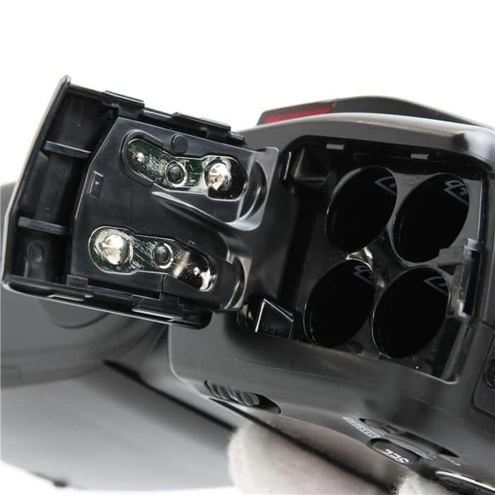 ロックレバー :ロックプレートおよびロックピンにより、アクセサリーシューからの脱落を防止。