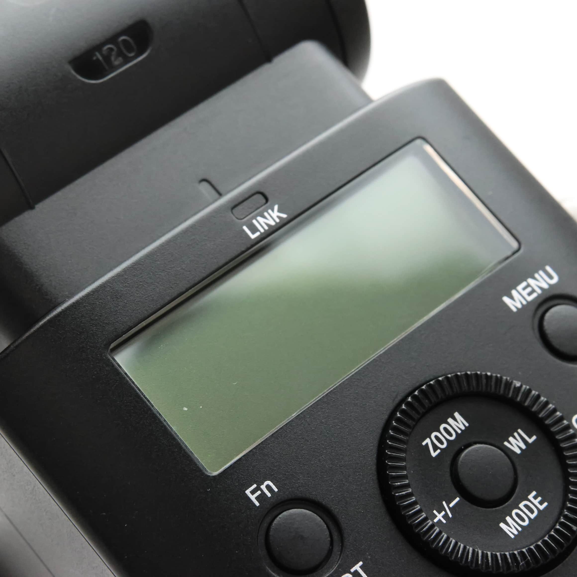 液晶画面には、視認性に優れたドットマトリクス液晶を採用。発光部は左右180°、上150°、下8°に動かせるバウンス構造で、さまざまな構図や撮影シーンに合わせたライティング表現が可能です。また、防塵・防滴に配慮した設計も施しています。