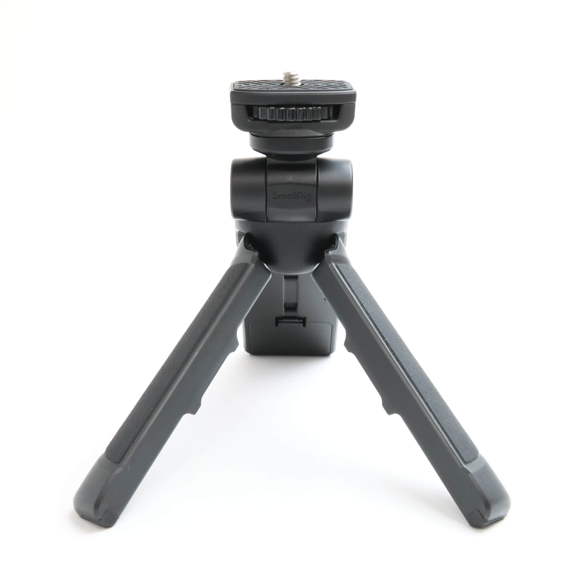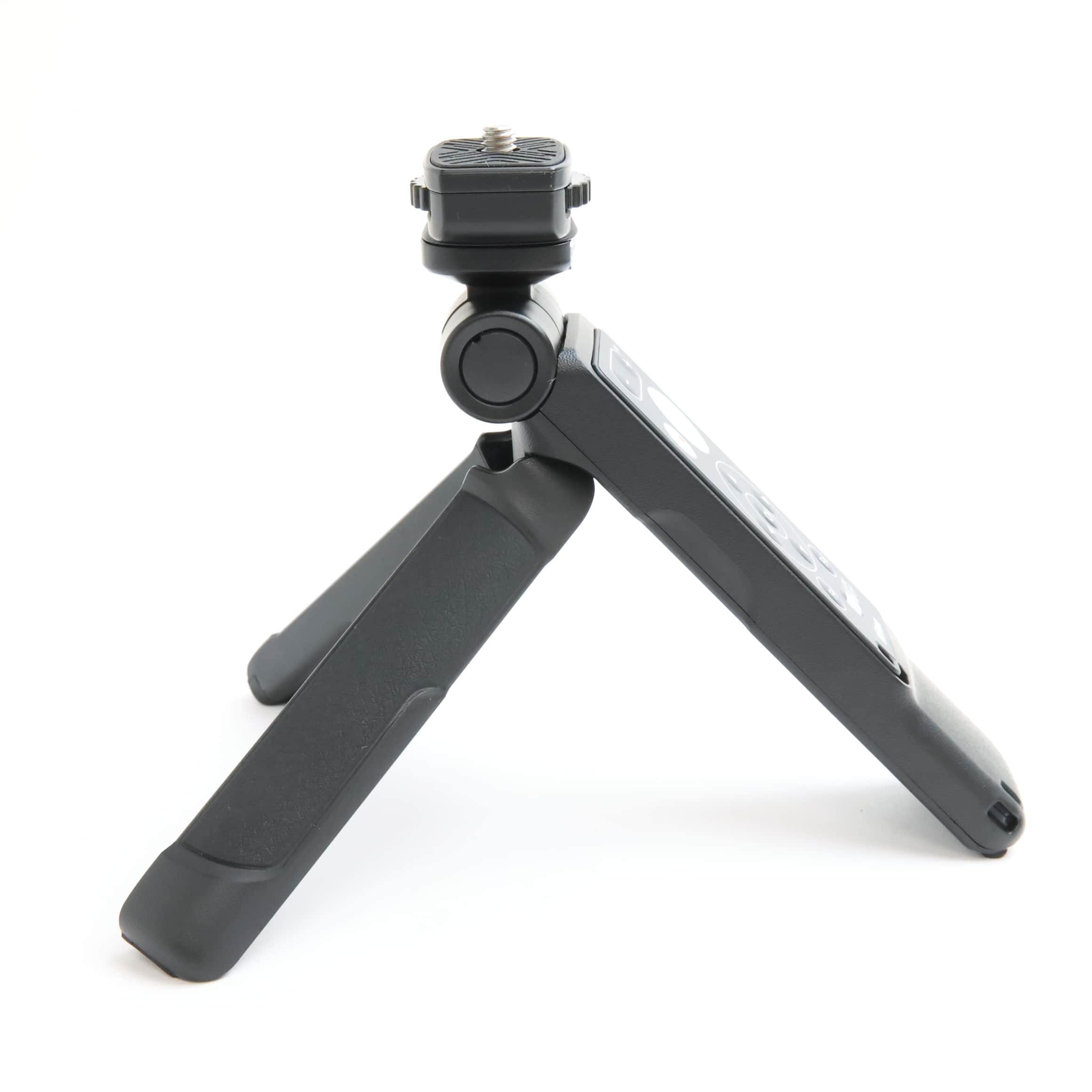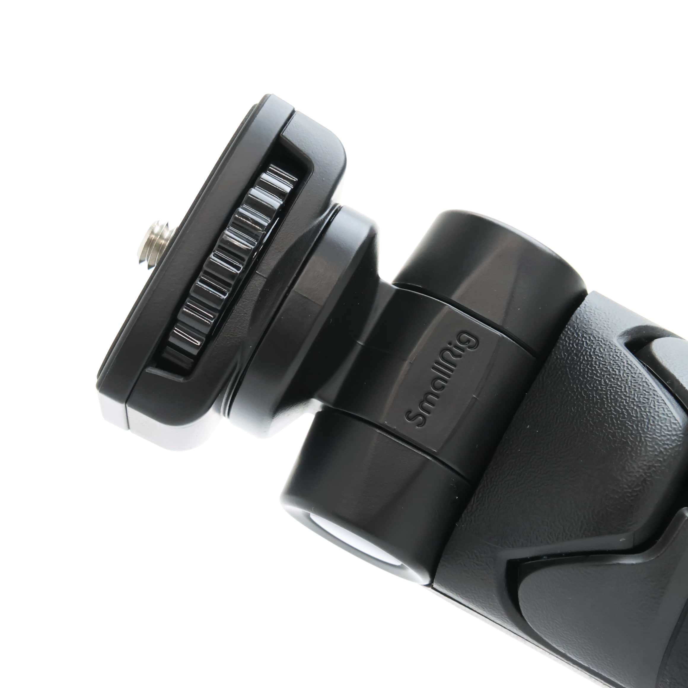 SmallRig社のトライポッドグリップと、リモコン ML-L7のセット。手持ちでの動画撮影時にグリップとして使用すると、ハイアングルでの撮影や自分撮りがより容易に行えます。
