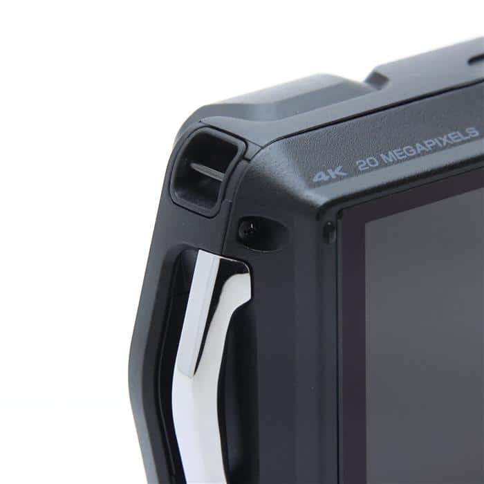 気密性の高いボディ構造を採用し、リコー社WGシリーズで最高となる水深20mで連続2時間の水中使用に耐える高い防水性能(JIS保護等級8級、IPX8相当)を実現しています。また、過酷なアウトドア環境下での本格使用に耐える2.1mからの耐落下衝撃性能※1 やホコリに強い防塵性能(JIS保護等級6級、IP6X準拠)、マイナス10℃でも動作が可能な耐寒構造、100kgf(重量キログラム)までの重さに耐える耐荷重構造※2 なども備え、過酷なアウトドア環境下での本格使用に耐えるタフネスモデルに仕上がっています。