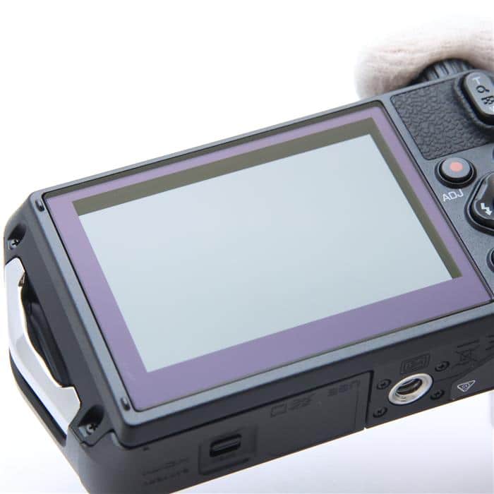 3.0型(3:2)、約104万ドットの大型で高精細な液晶モニターを搭載しています。外光の反射を抑えて映り込みを軽減するAR(Anti-Reflection)コートをカバー部に施すことで、日差しの強い屋外でも明るく見やすくなっています。また、使用環境に応じて最も見やすい明るさに簡単に調整できる“アウトドアモニター”機能により、屋外での快適な視認性を実現しています。