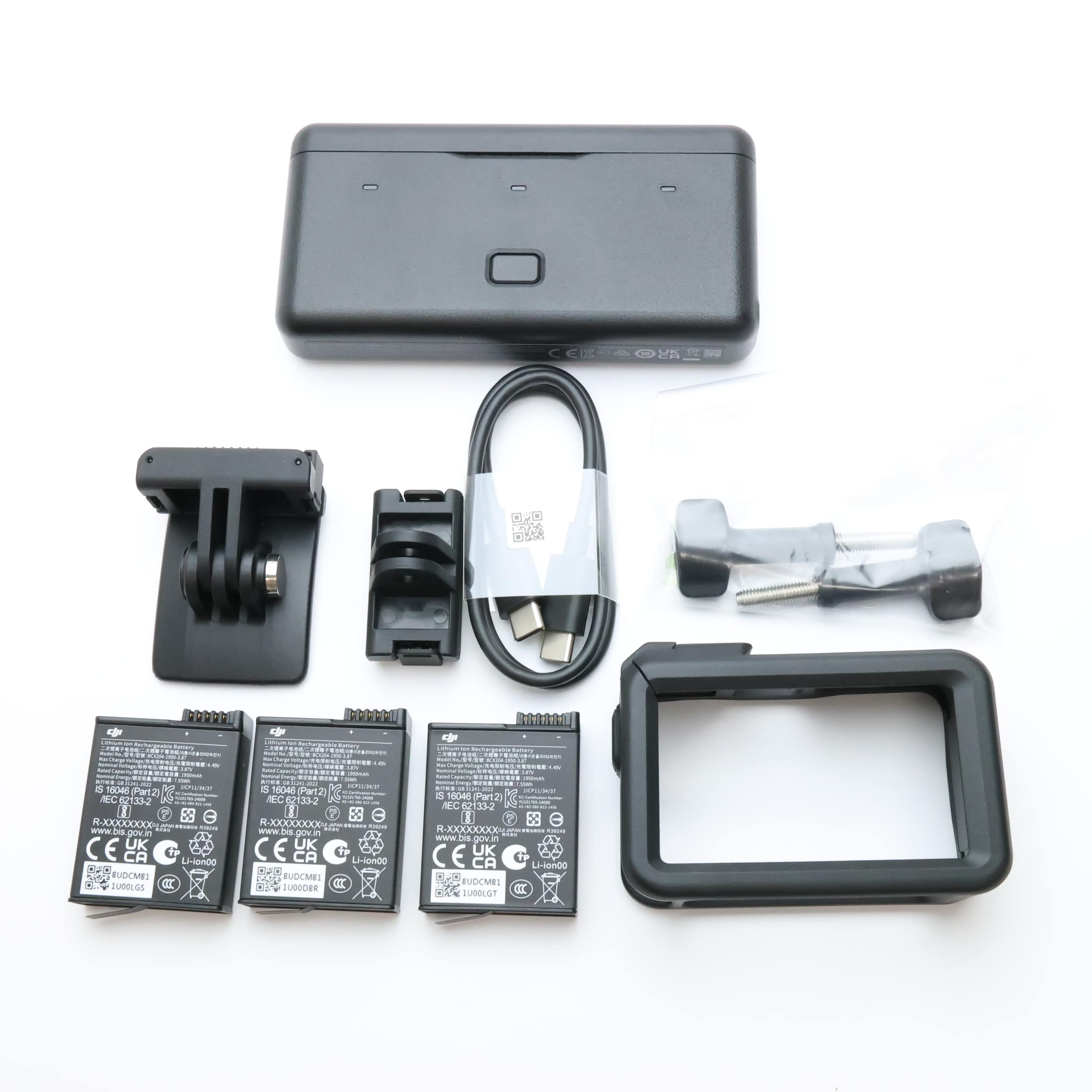 元箱・クイックスタートガイド・フレーム・バッテリーx3・多機能バッテリーケース・USB-Cケーブル・クイックリリース式アダプターマウント・クイックリリース式アダプターマウント(ミニ)・接着式カーブベース・止めねじx2・滑り止めパッドx4・延長ロッド