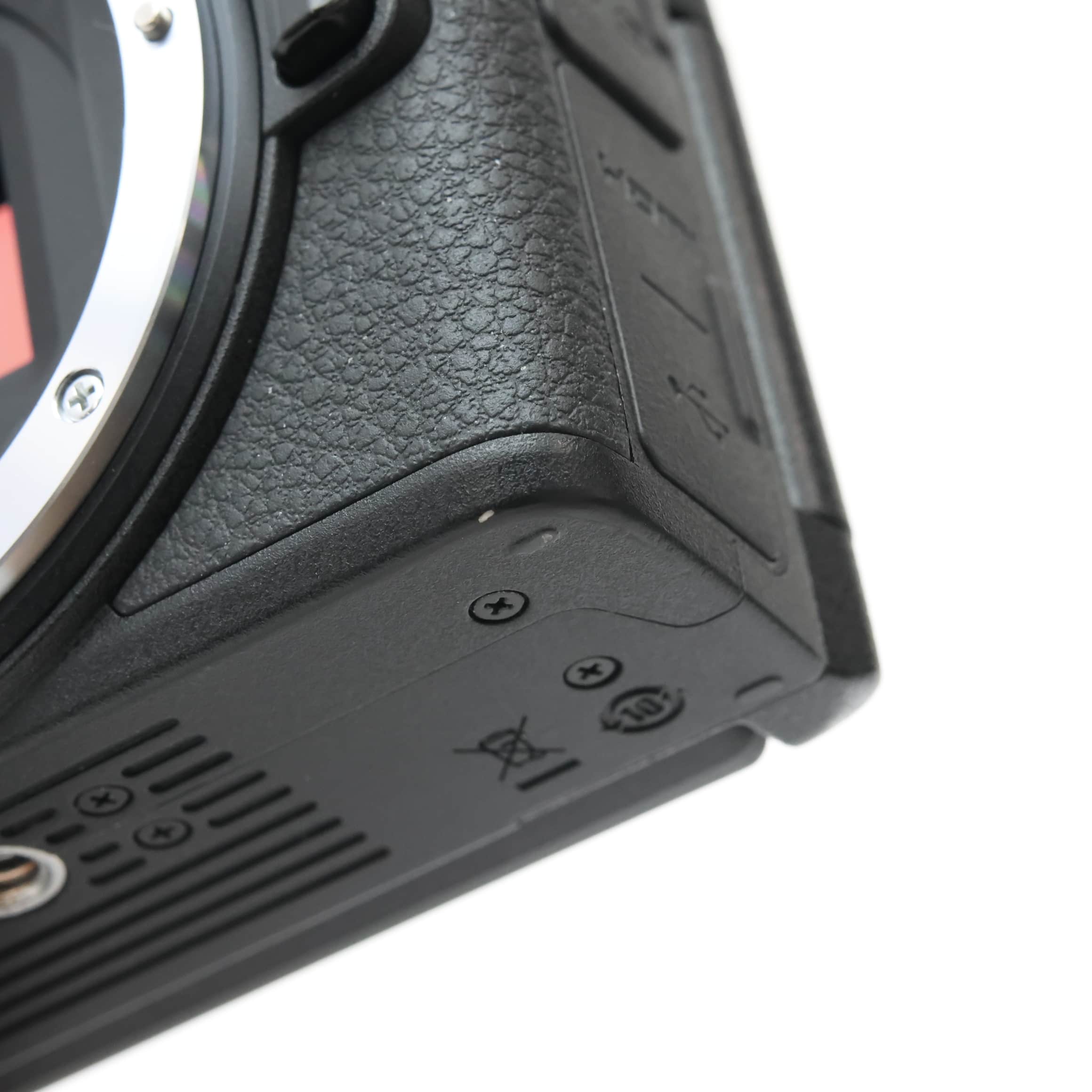 質量:約550g(バッテリーおよびメモリーカードを含む、ボディーキャップを除く)、約495g(本体のみ)