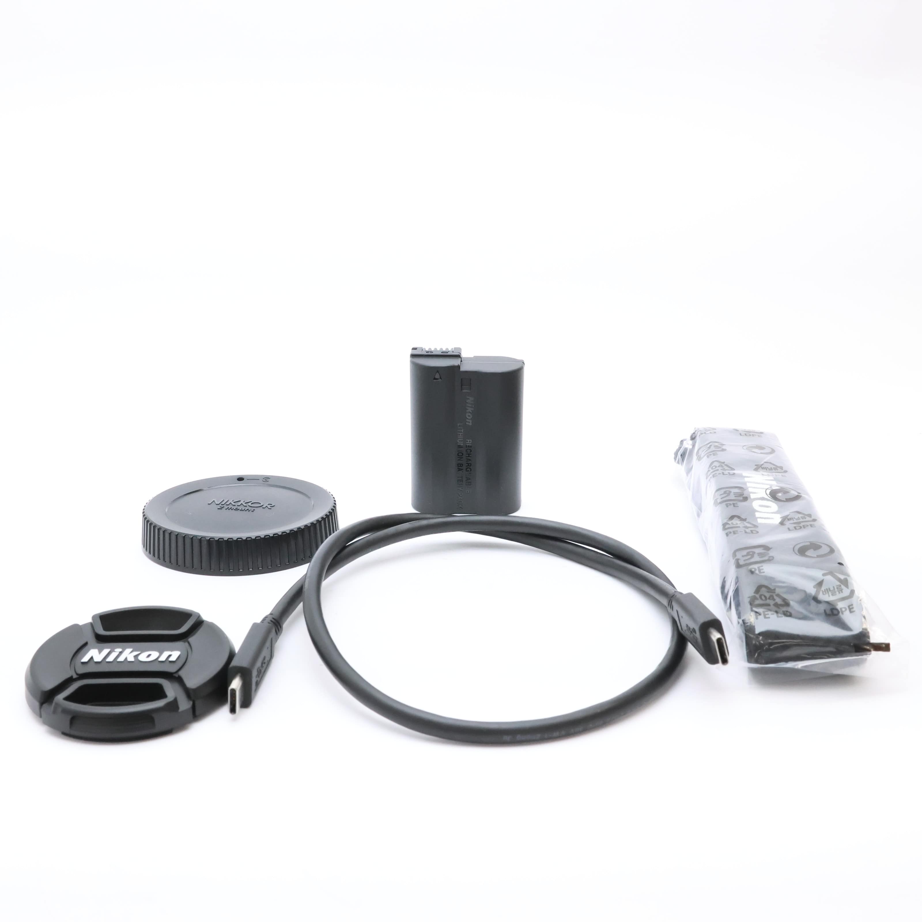 ストラップ・バッテリー・USB-Cケーブル・レンズフロントキャップ・レンズリアキャップ