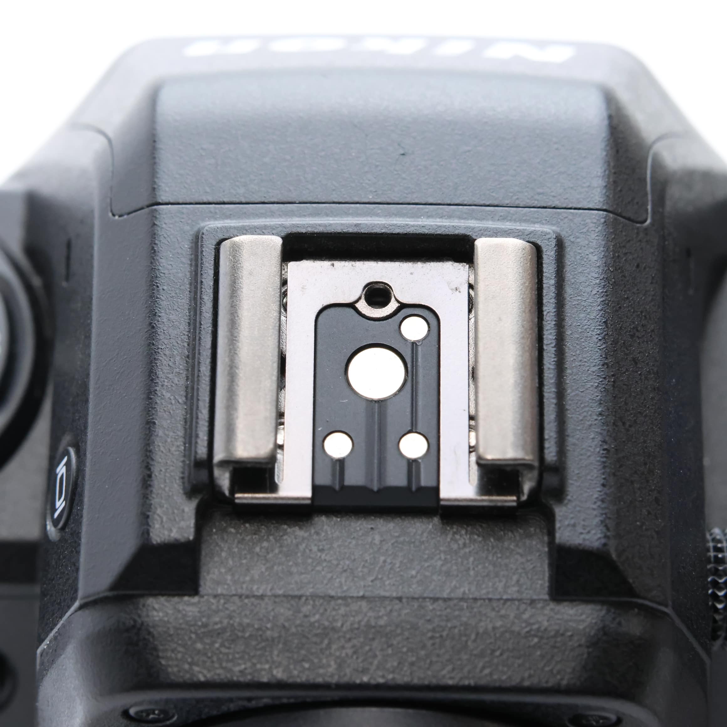 アクセサリーシュー:ホットシュー(ISO 518):シンクロ接点、通信接点、セーフティーロック機構(ロック穴)付