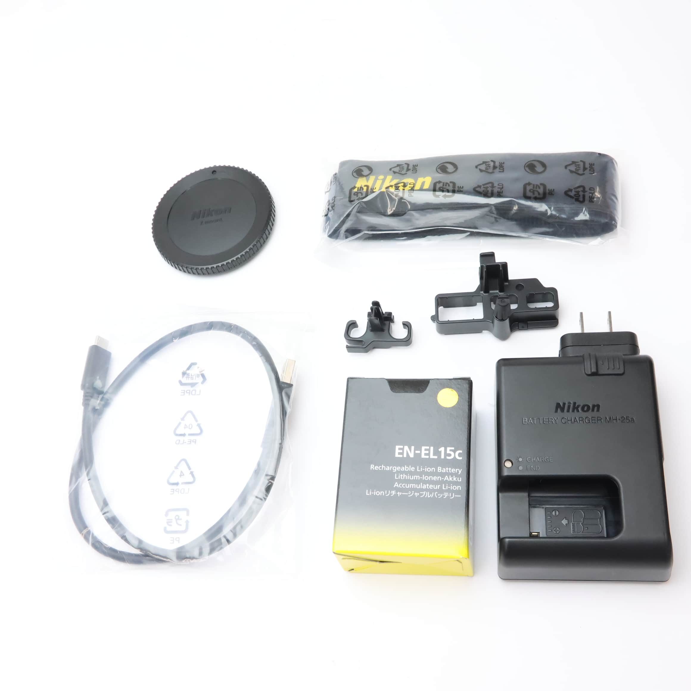 元箱・取扱説明書・ストラップ・チャージャー・USBケーブル・ケーブルクリップ・新品バッテリー