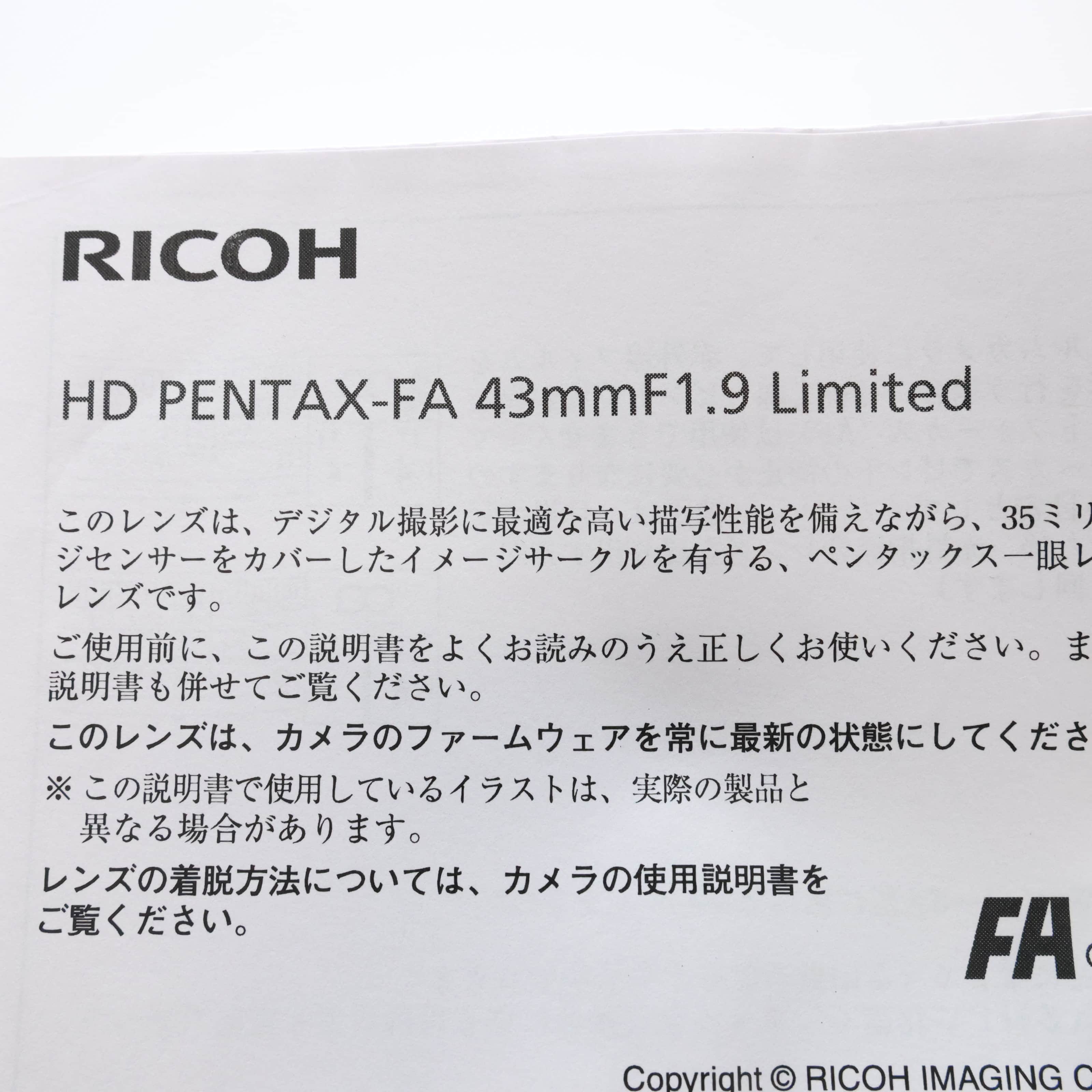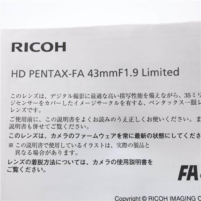PENTAX (ペンタックス) HD FA 43mm F1.9 Limited ブラック通販のマップカメラ。デジタルカメラや交換レンズの中古・新品販売、買取・下取を行うカメラ通販ショップ(ECサイト)です。
