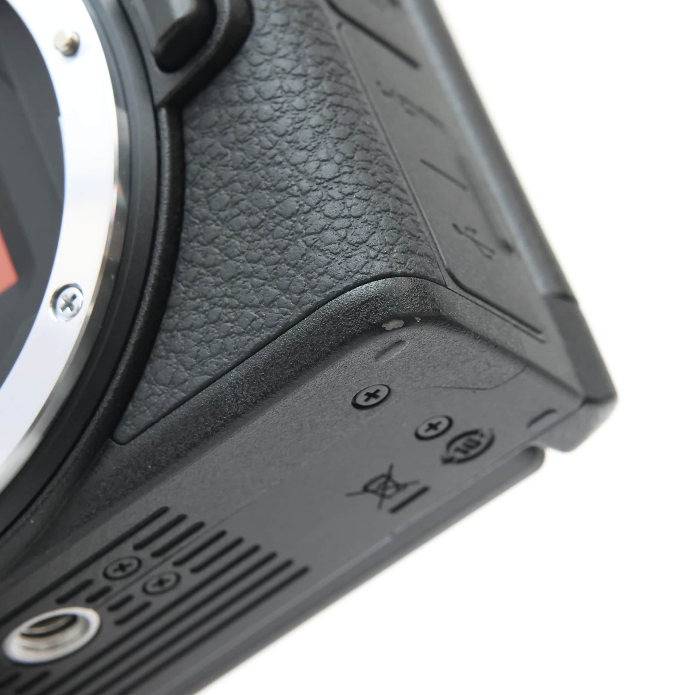 質量:約550g(バッテリーおよびメモリーカードを含む、ボディーキャップを除く)、約495g(本体のみ)