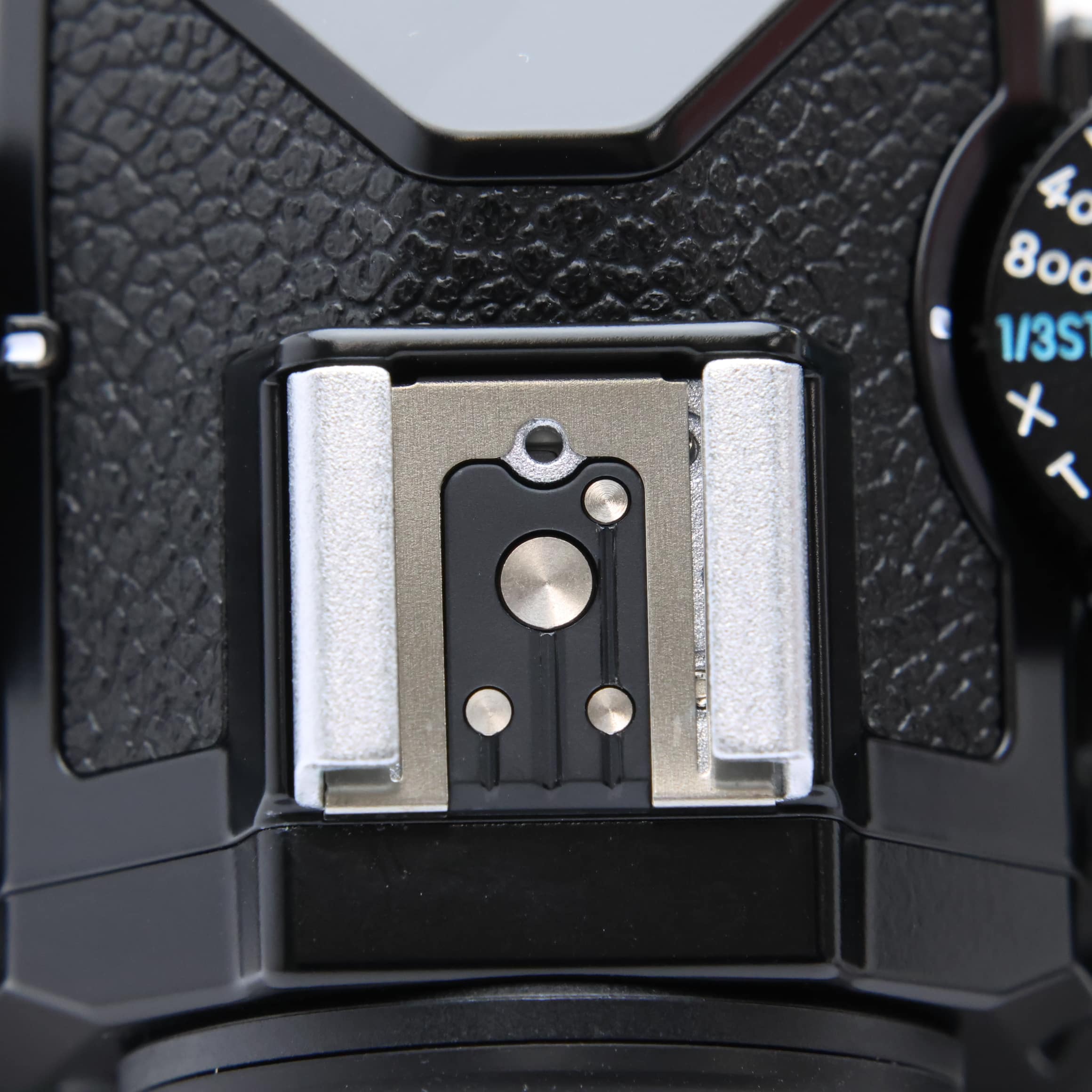 アクセサリーシュー:ホットシュー(ISO 518):シンクロ接点、通信接点、セーフティーロック機構(ロック穴)付
