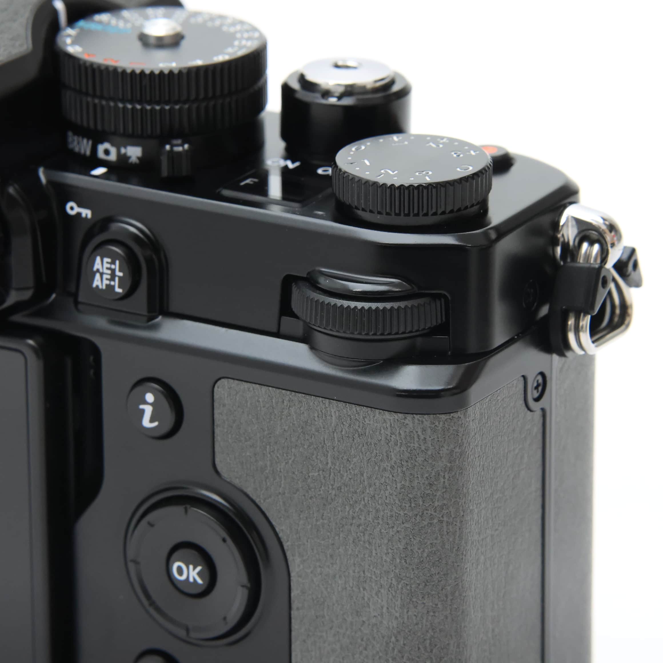 手にした瞬間から、撮る道具としての本格感が味わえます。シャッターボタンや電源スイッチをはじめ、シャッタースピード、露出補正、ISO感度の各ダイヤルには、質感の高い真鍮を採用。各ダイヤルのクリック音と感触は、試作と調整を重ね、使いやすさと心地良さを追求しています。また、撮影をサポートしながらもデザイン性に優れたグリップや、触り心地と質感を向上した人工皮革、押し心地を重視したシャッターボタンも特長のひとつ。細部へのこだわりが、上質な操作感を実現します。