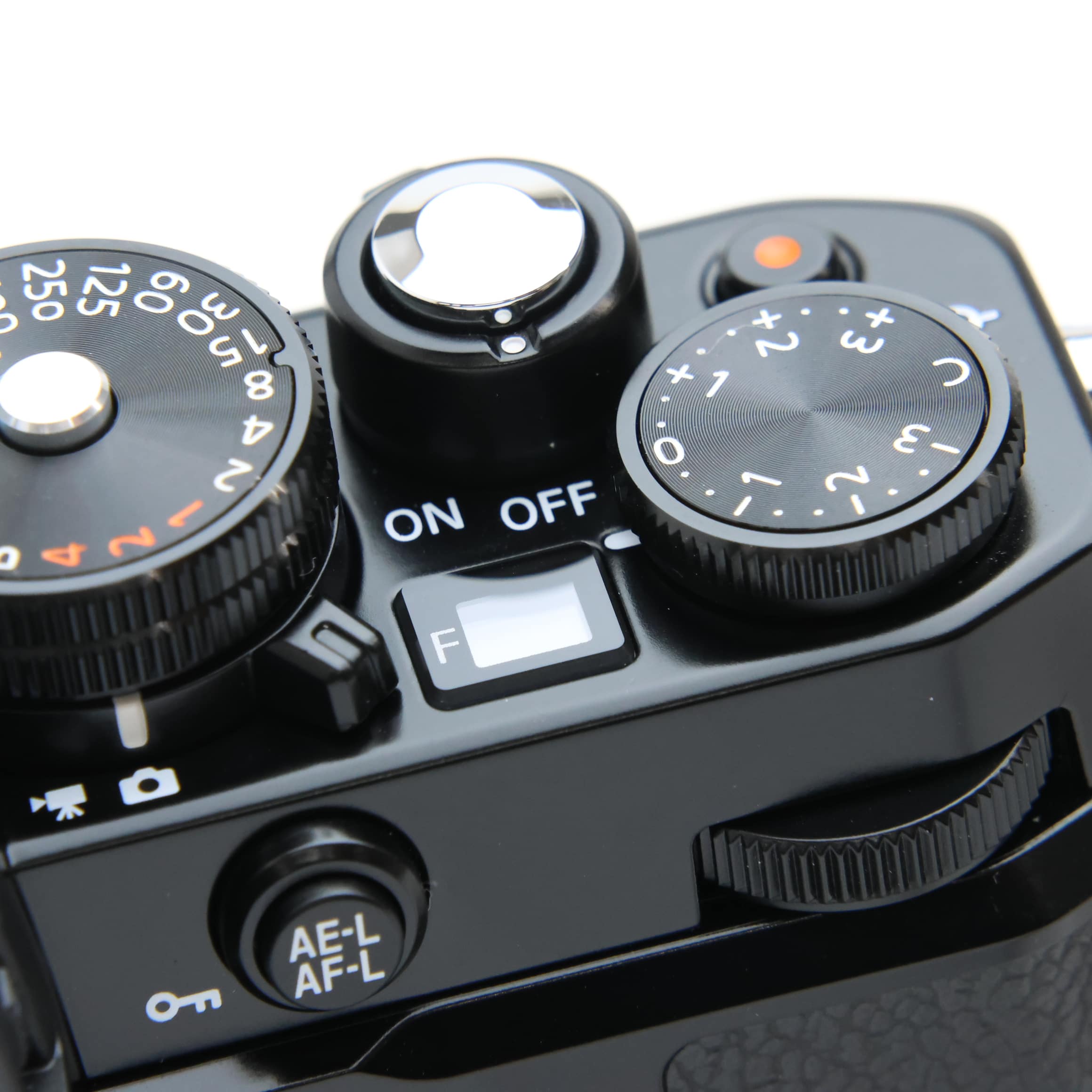 ボディーの天面にシャッタースピード、ISO感度、露出補正の3つのダイヤルと、F値を表示する小窓を搭載。一目で基本的なカメラ設定を視認できます。手応えのあるダイヤル操作は、一つ一つの設定を丁寧に調節してシャッターをきるという撮影スタイルを楽しませてくれます。