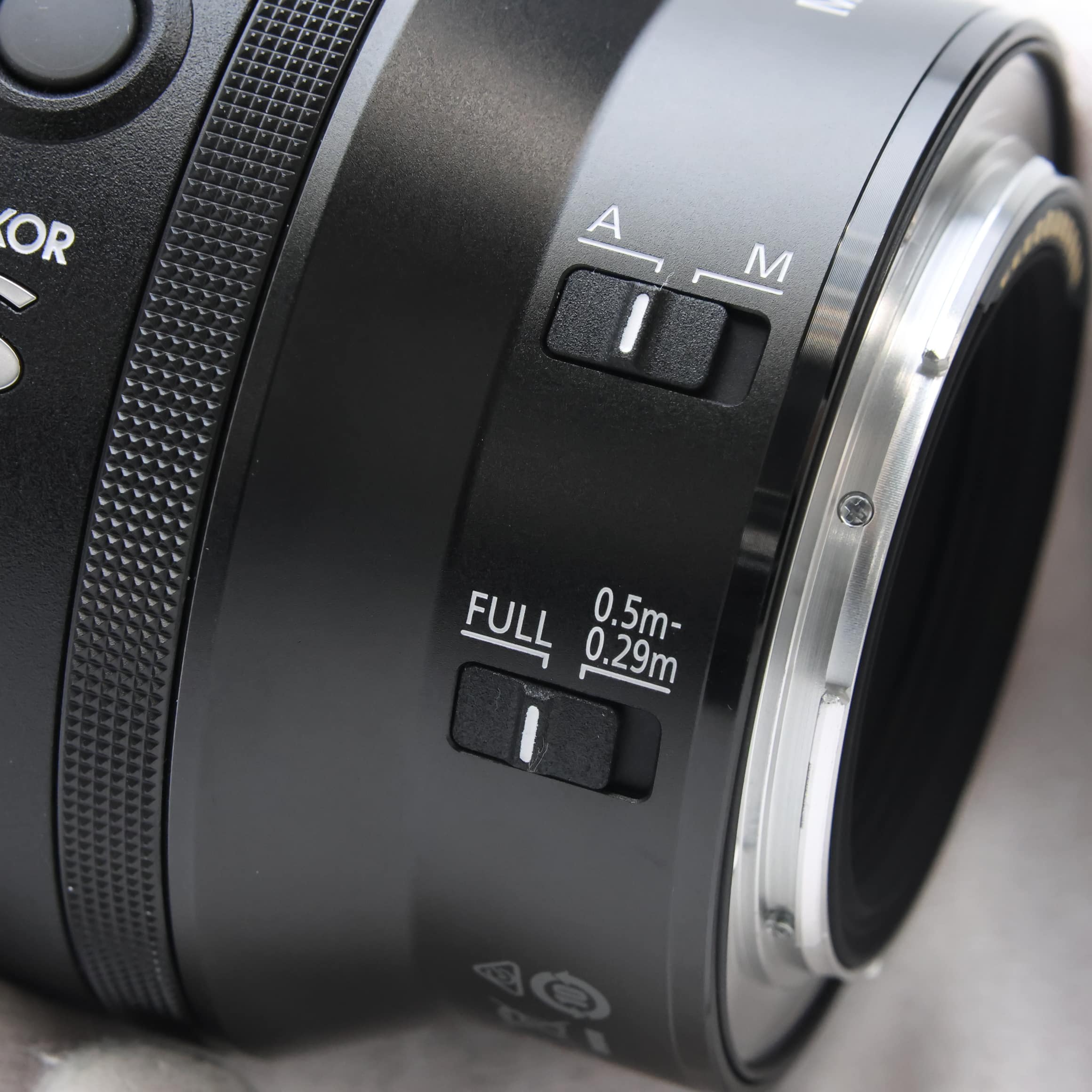 フォーカス制限切り換えスイッチ:FULL(∞~0.29m)と0.5m-0.29mの2段切り換え