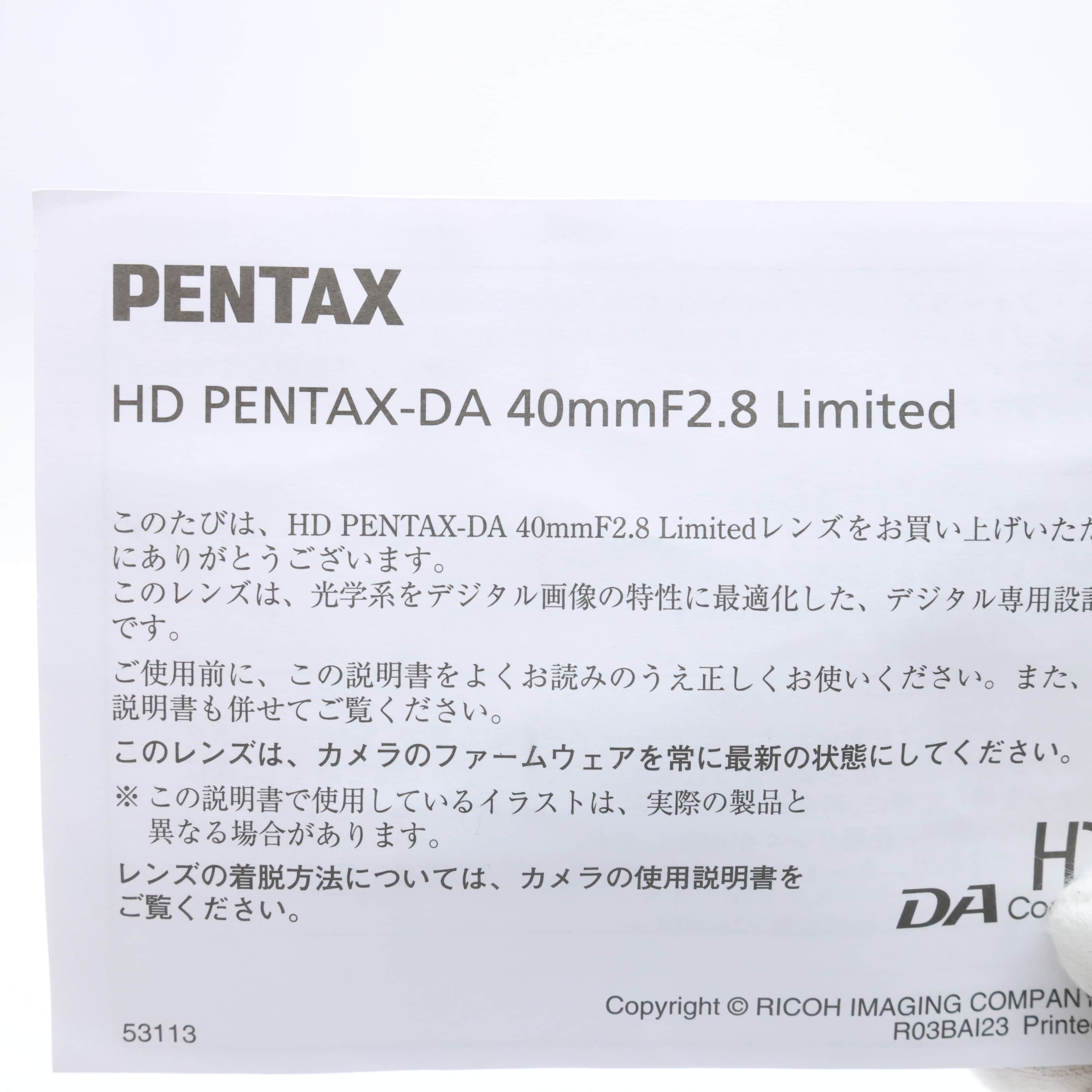 PENTAX (ペンタックス) HD DA40mm F2.8 Limited ブラックの購入、価格検討ならマップカメラ