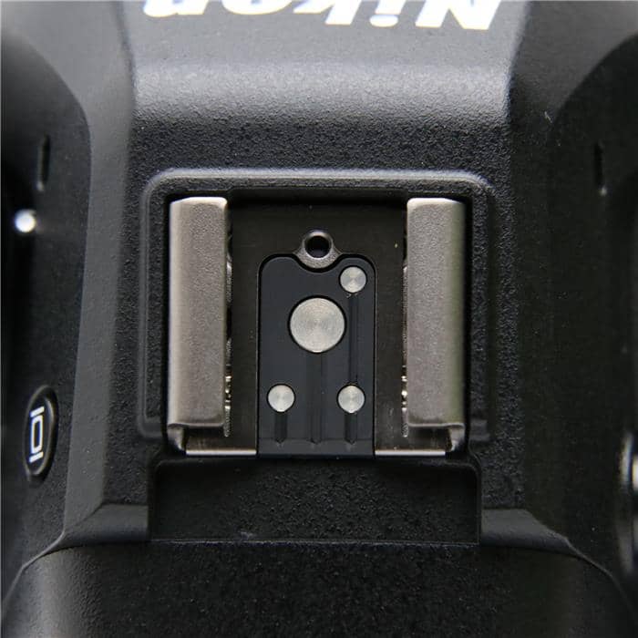 アクセサリーシュー:ホットシュー(ISO 518):シンクロ接点、通信接点、セーフティーロック機構(ロック穴)付