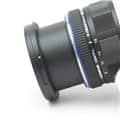 携帯性を確保するために沈胴式の鏡枠機構を取り入れ、厚みはわずか49.5mm。従来のフォーサーズレンズ「ZUIKO DIGITAL ED 9-18mm F4.0-5.6」に比べ、体積比50%以下・質量比60%以下と、大幅な小型・軽量化を実現しました。