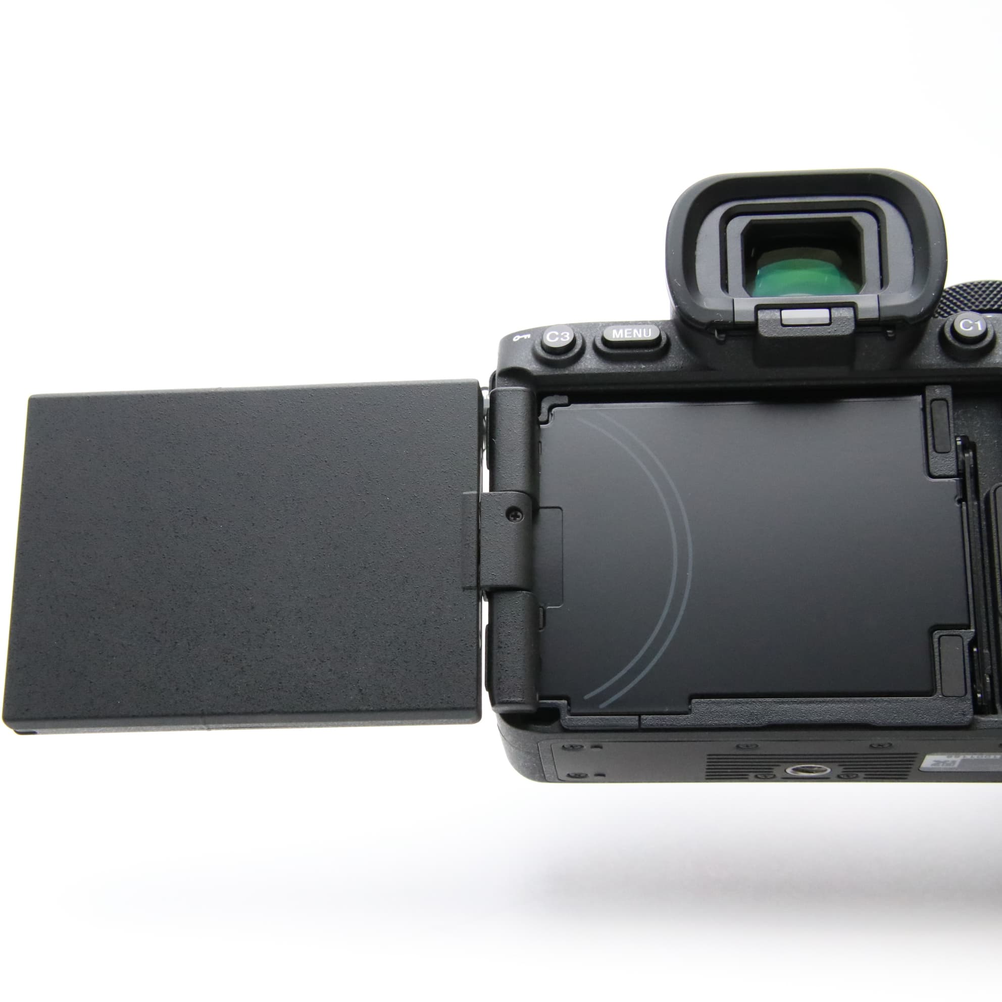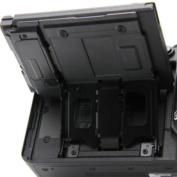 『α7R V』では、従来のチルト液晶モニターと横開きバリアングル液晶モニターの利便性を兼ね備え、横位置でも縦位置でも見やすい位置に自在に角度を調整できる、ソニー独自の4軸マルチアングル液晶モニターを新開発しました。モニターを上方向約98度、下方向約40度、横方向に180度まで開けます。オープン位置では270度まで回転でき、ヒンジ部は厚みを抑えながらも堅牢性を備えています。