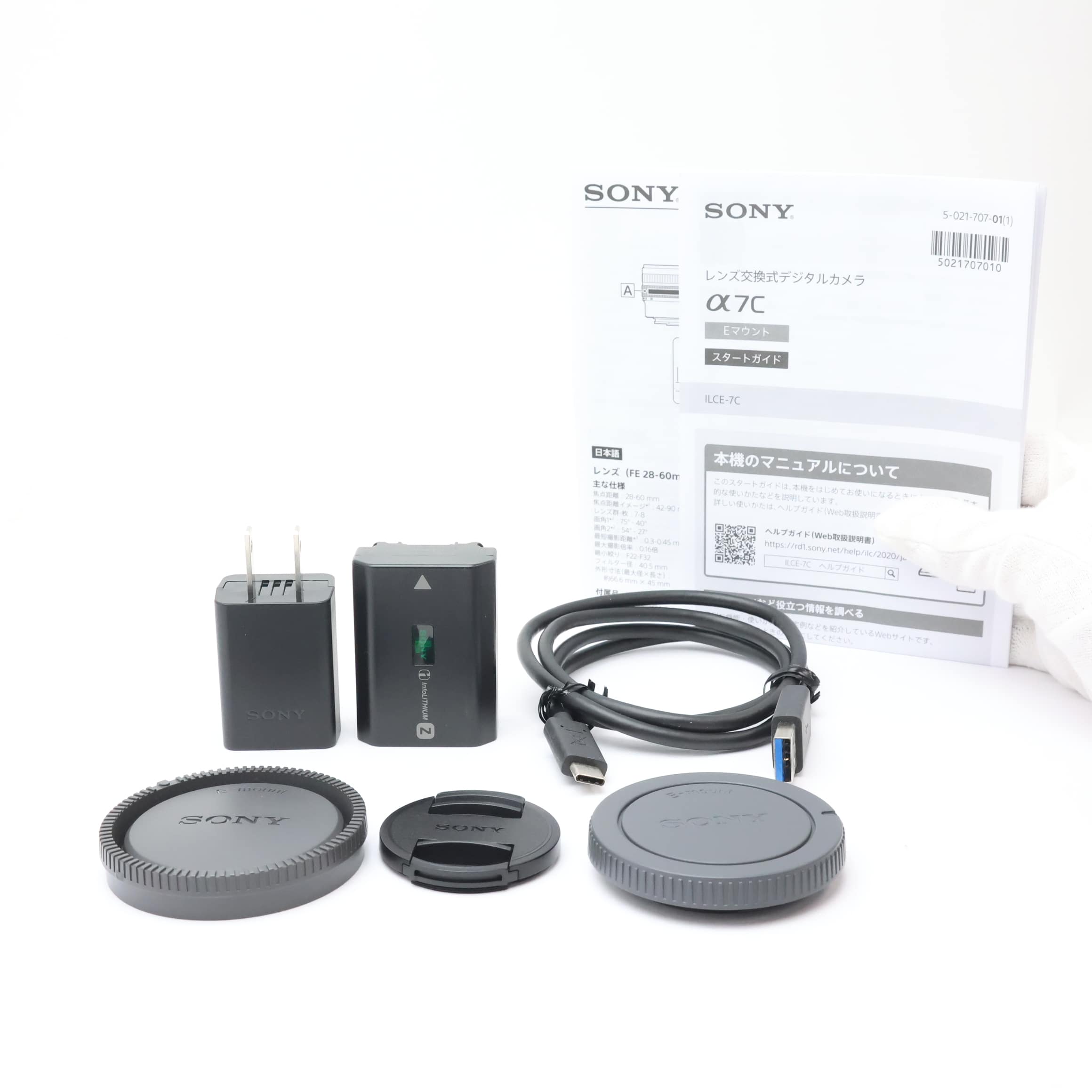 元箱・スタートガイド・バッテリー・ACアダプター・USB-Cケーブル・レンズフロントキャップ・レンズリアキャップ