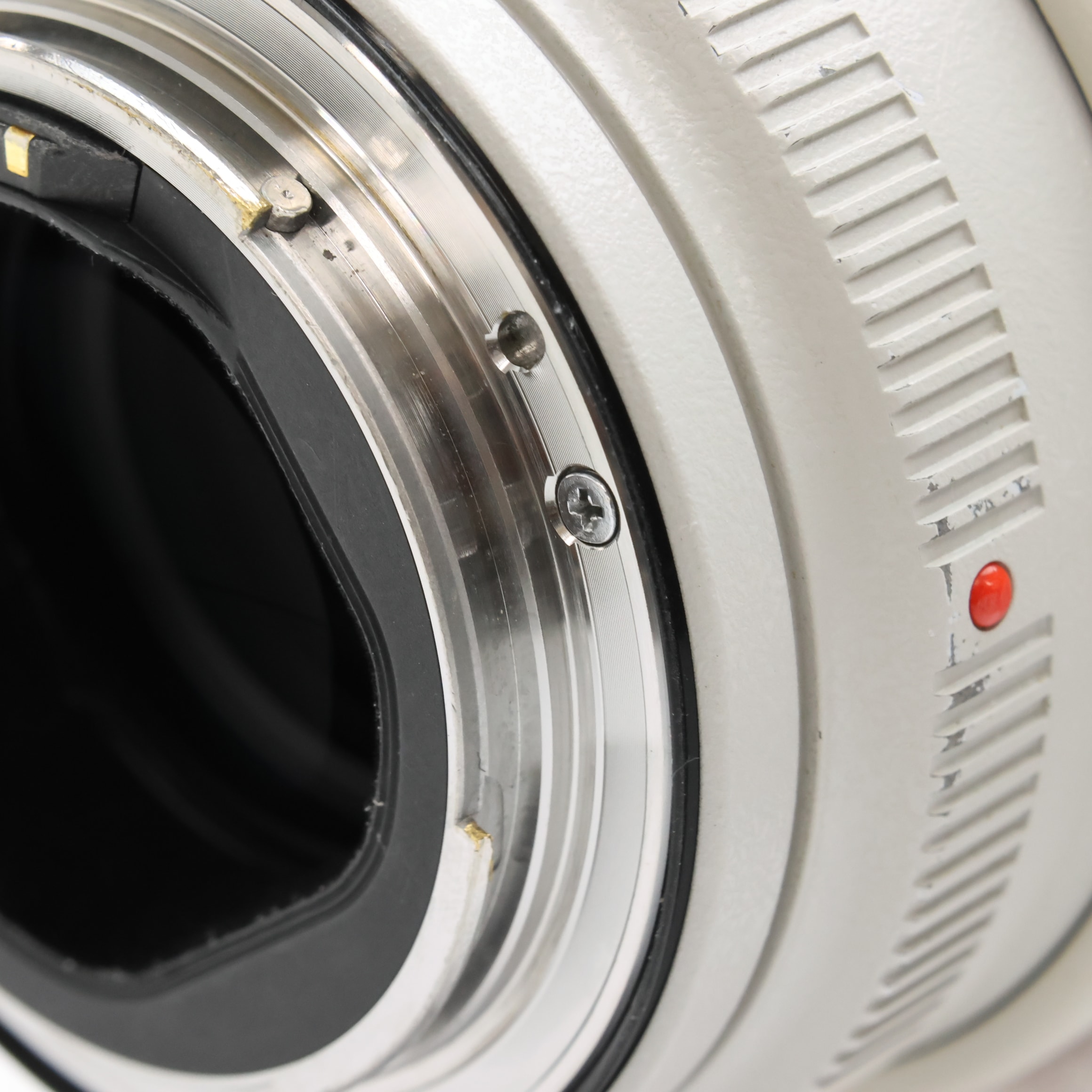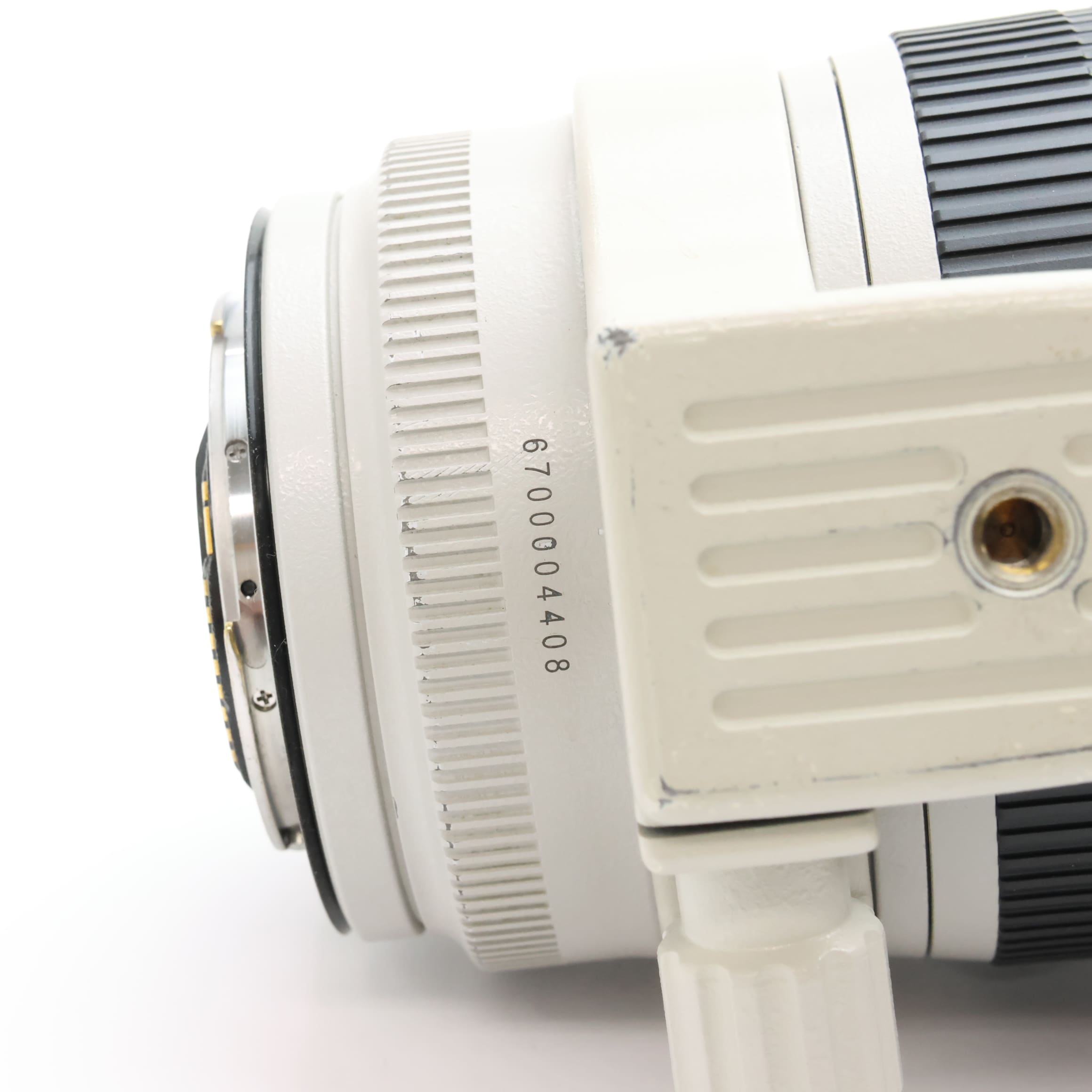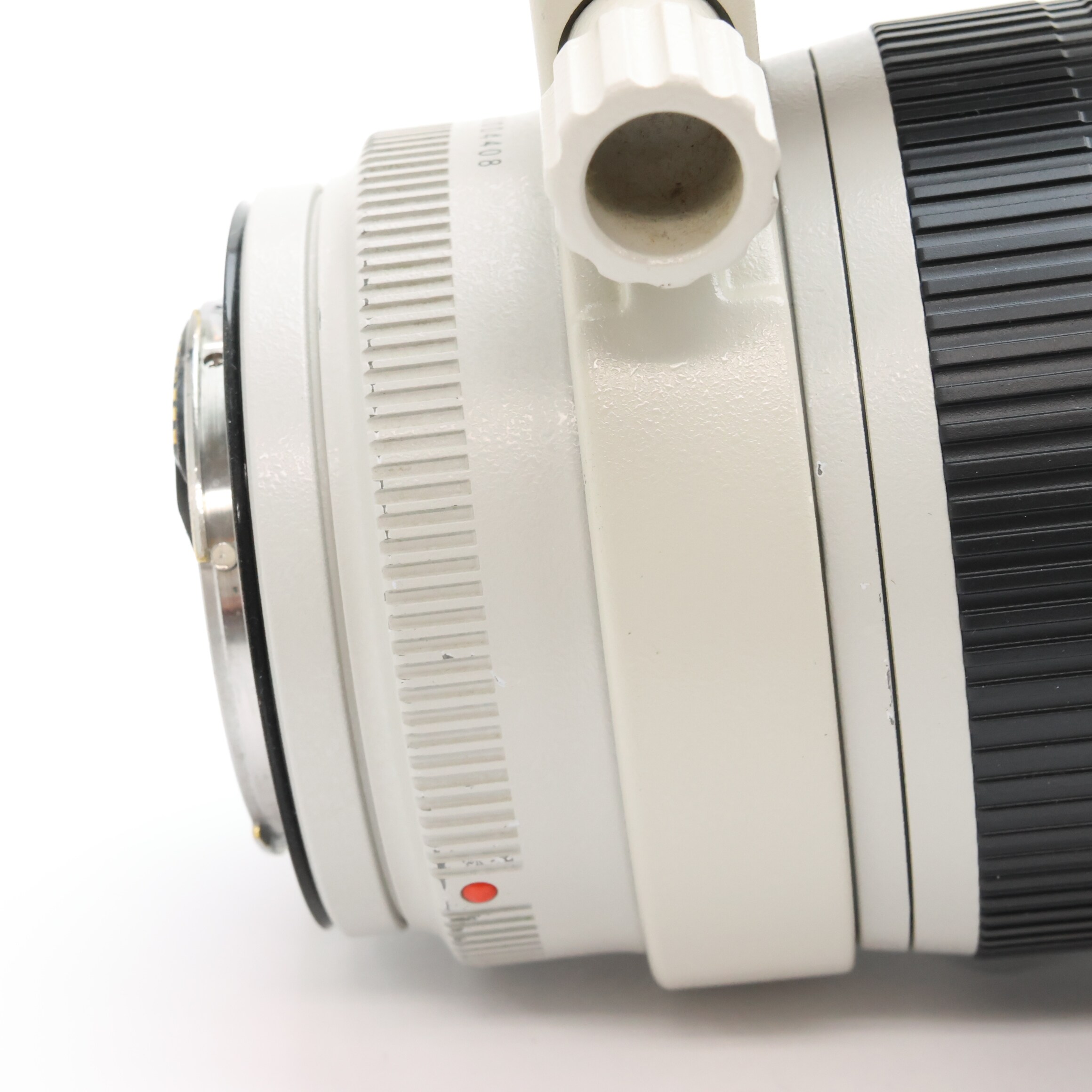 【外観】鏡胴先端部にスレキズ・塗装はがれ、鏡胴全体にテカリ、鏡胴下部/三脚座に塗装はがれがありますが、実用品として問題なくお使い頂ける商品です。