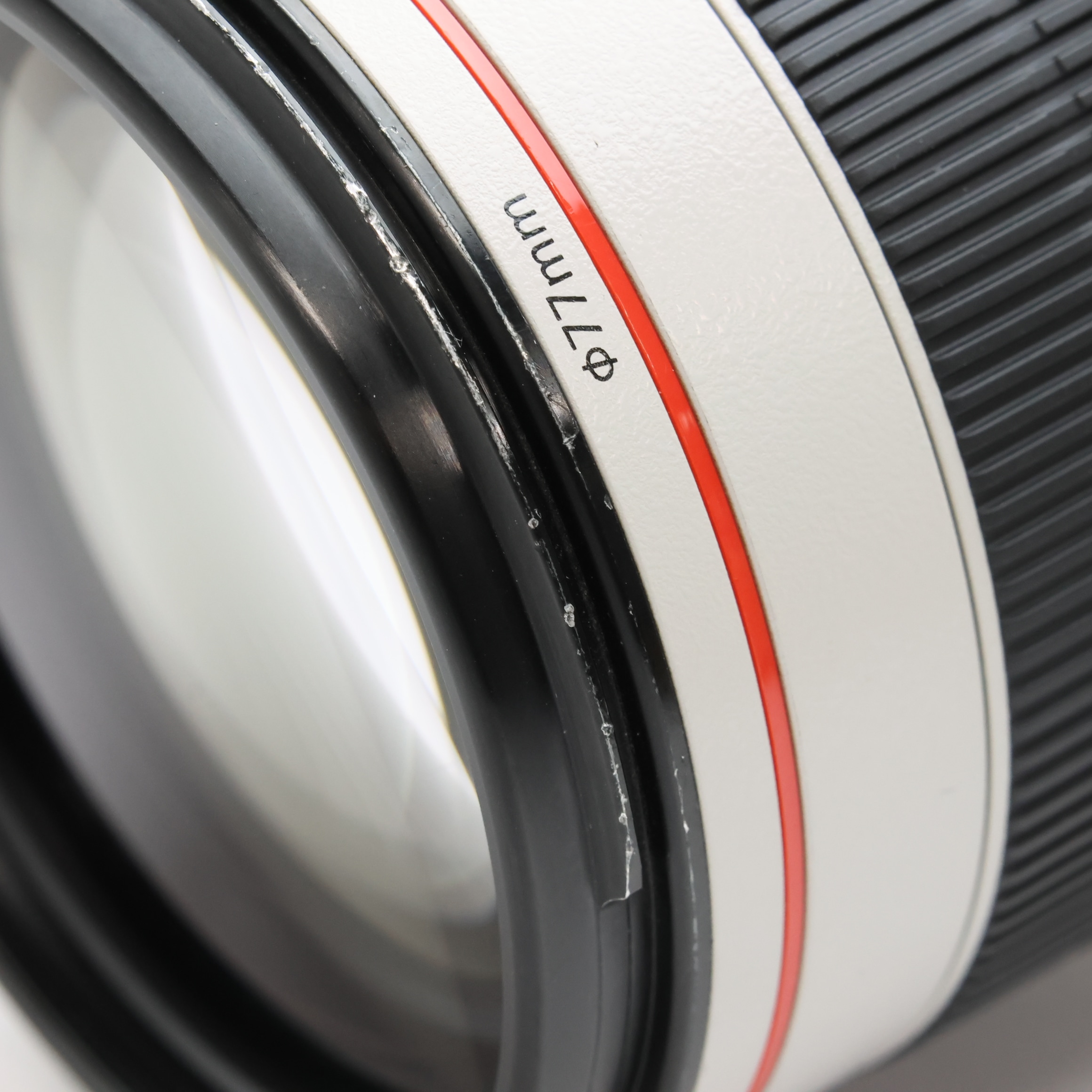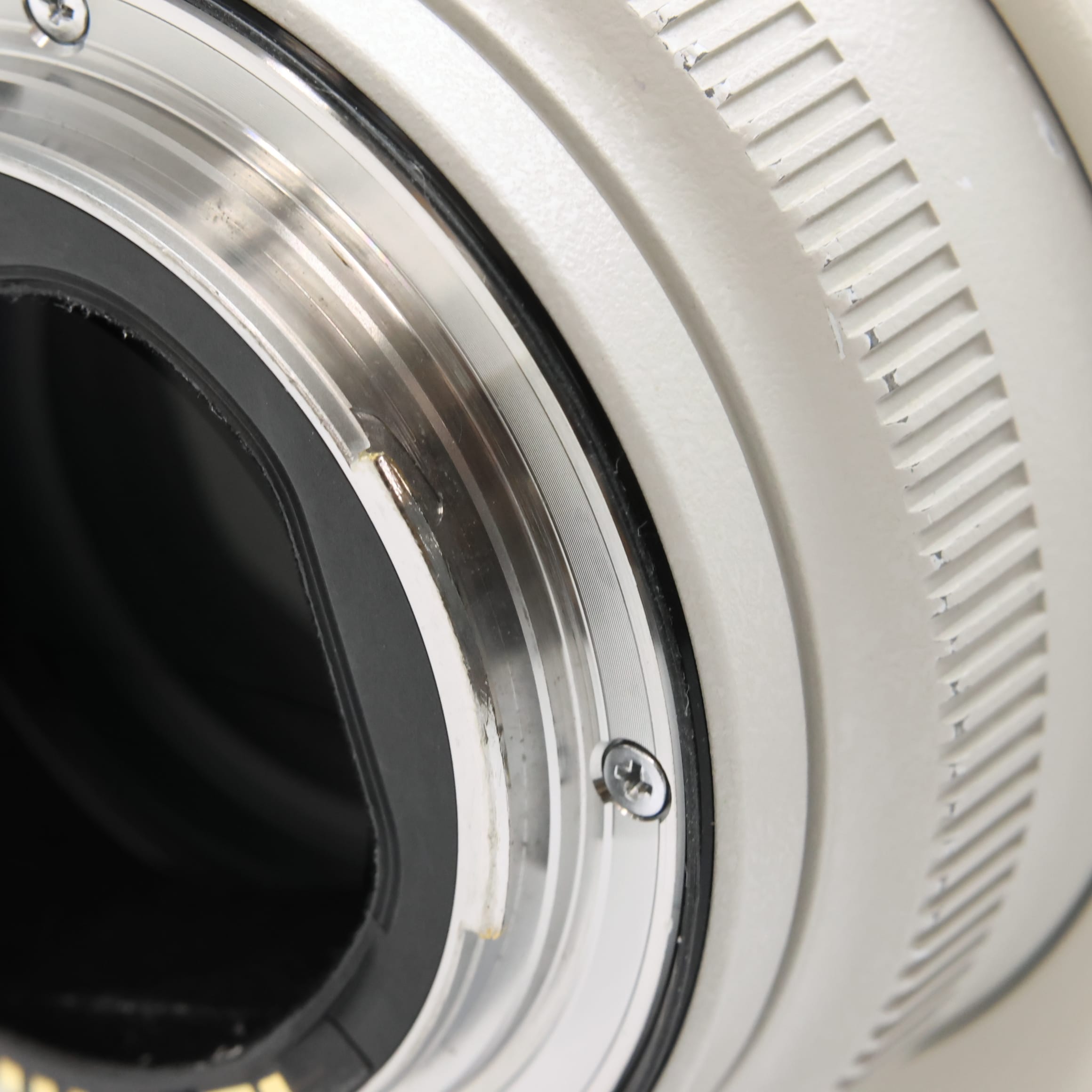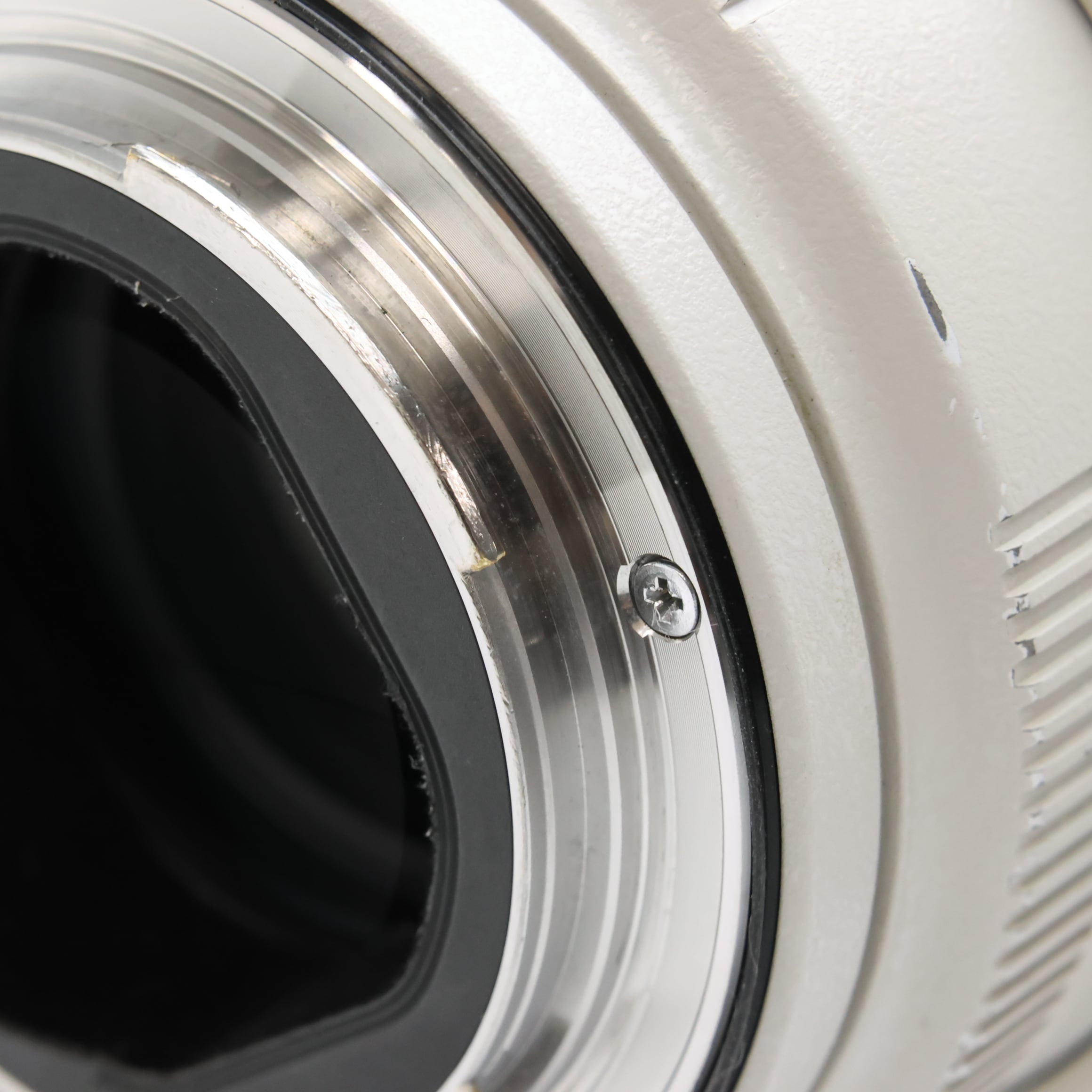 【外観】鏡胴先端部にスレキズ・塗装はがれ、鏡胴全体にテカリ、鏡胴下部/三脚座に塗装はがれがありますが、実用品として問題なくお使い頂ける商品です。