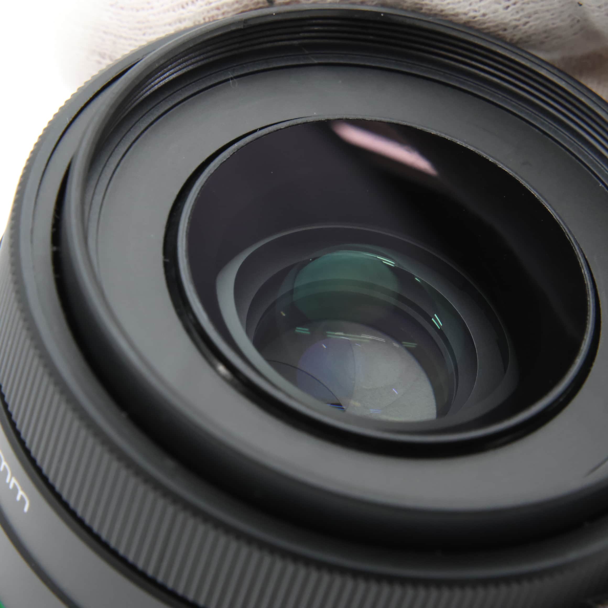 ハイブリッド非球面レンズを採用し、諸収差が良好に補正され、最短から無限遠までコントラストの高いシャープな画質と、絞り開放でも周辺まで良好な描写性能を実現しています。また、像性能に影響を及ぼすフレアやゴーストの発生を極限まで低減する、ゴーストレスコートを施すことで、逆光などの厳しい条件下でも透明感の高い画像が得られます。