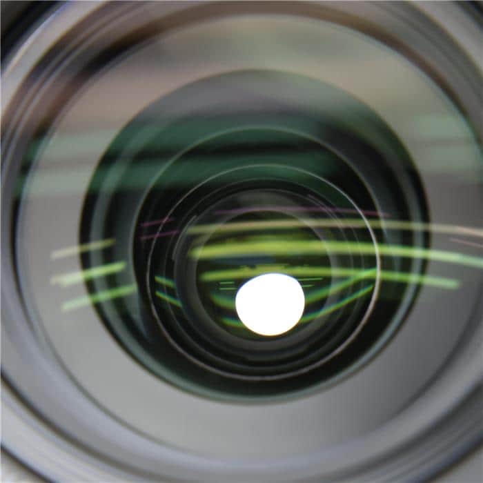 片面または両面に球面でない曲面を持つ非球面レンズは、ディストーション(歪曲収差)や球面収差などさまざまな収差を効果的に補正可能。ディストーションは、被写体がレンズを通して結像する際、像高(画像中心からの距離)によって倍率が異なるために生じる収差(像の歪み)で、レンズ中心周辺から非球面を用いて連続的に屈折力を変化させることで補正できます。また、非球面レンズ1枚で、複数枚の球面レンズに相当する収差補正効果が得られるため、球面レンズに比べてレンズの小型化や軽量化に大きく貢献しています。