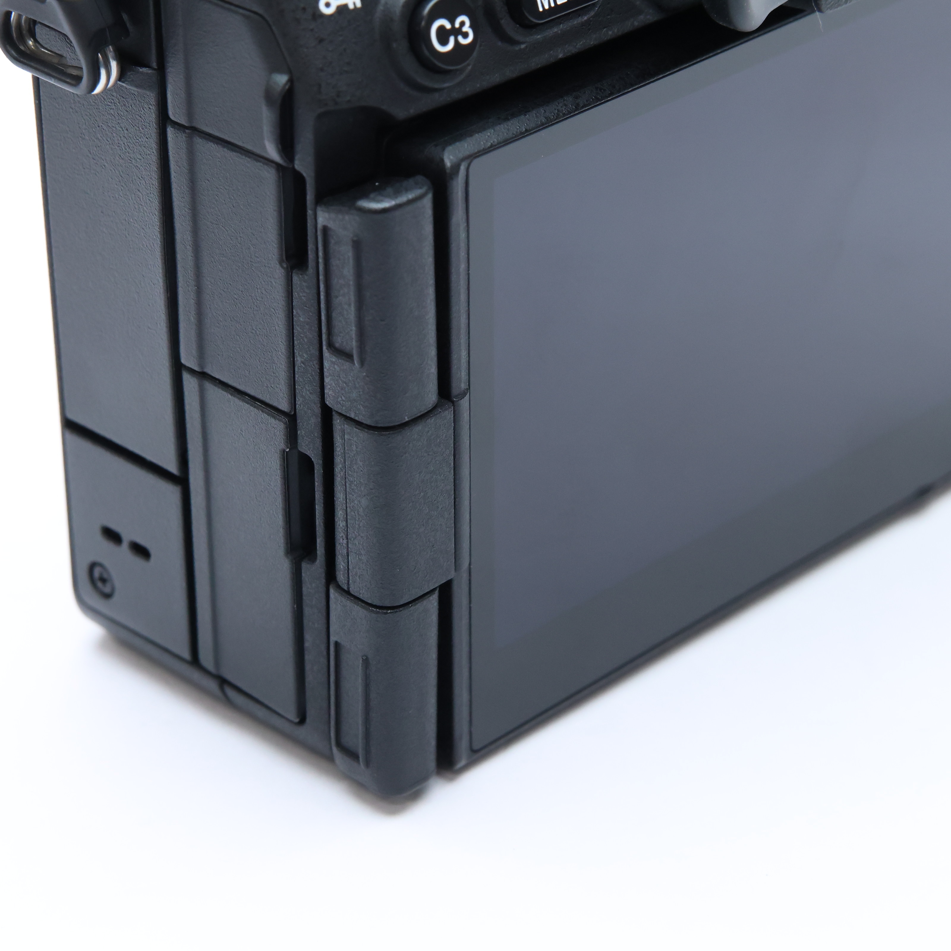 『α7R V』では、従来のチルト液晶モニターと横開きバリアングル液晶モニターの利便性を兼ね備え、横位置でも縦位置でも見やすい位置に自在に角度を調整できる、ソニー独自の4軸マルチアングル液晶モニターを新開発しました。モニターを上方向約98度、下方向約40度、横方向に180度まで開けます。オープン位置では270度まで回転でき、ヒンジ部は厚みを抑えながらも堅牢性を備えています。