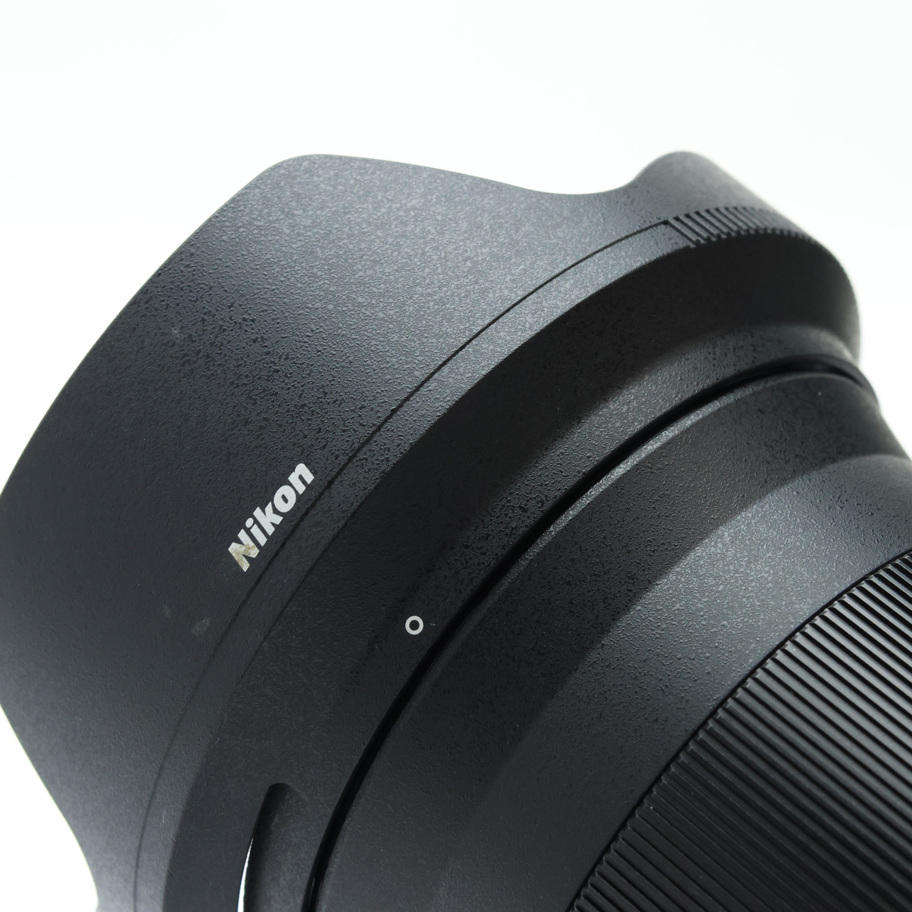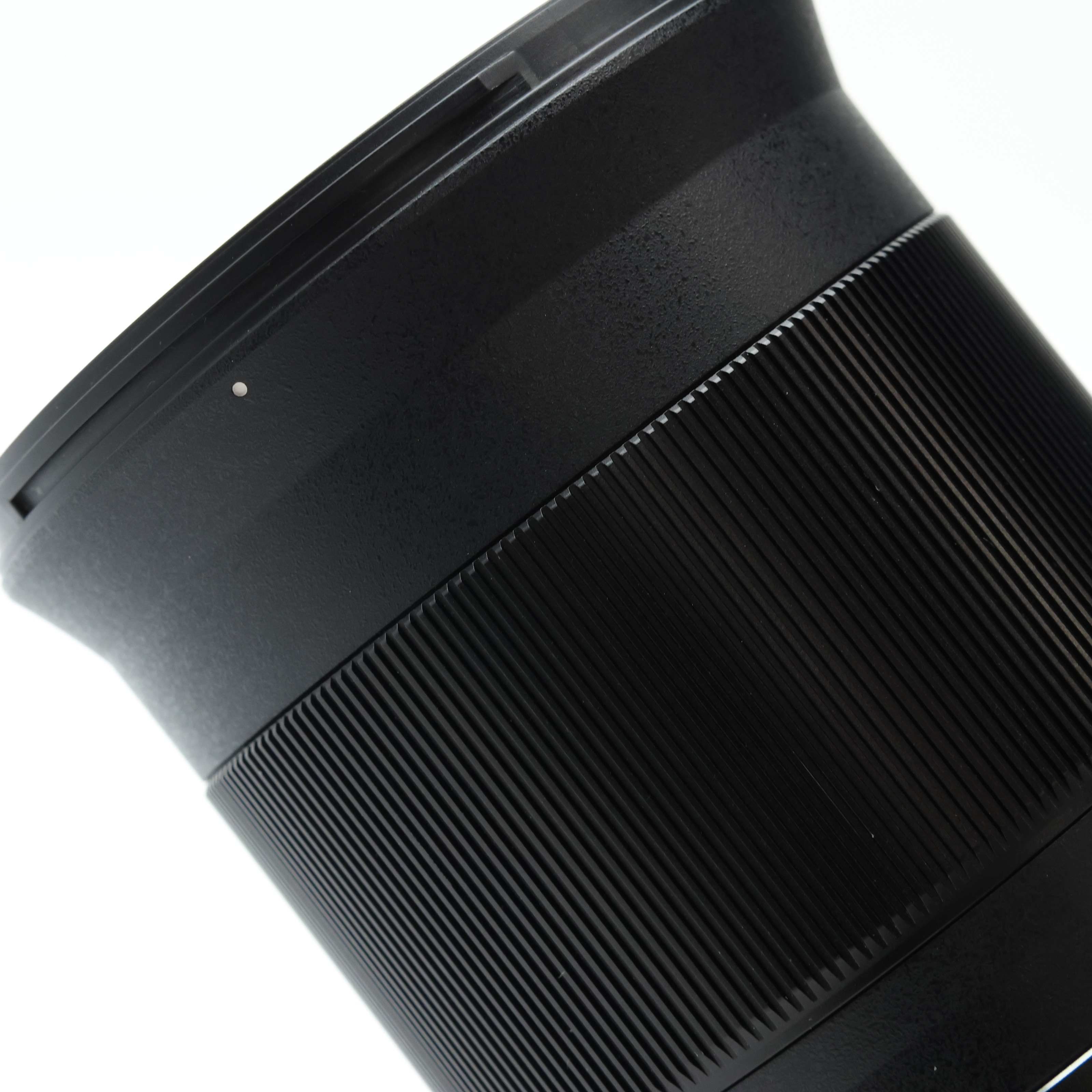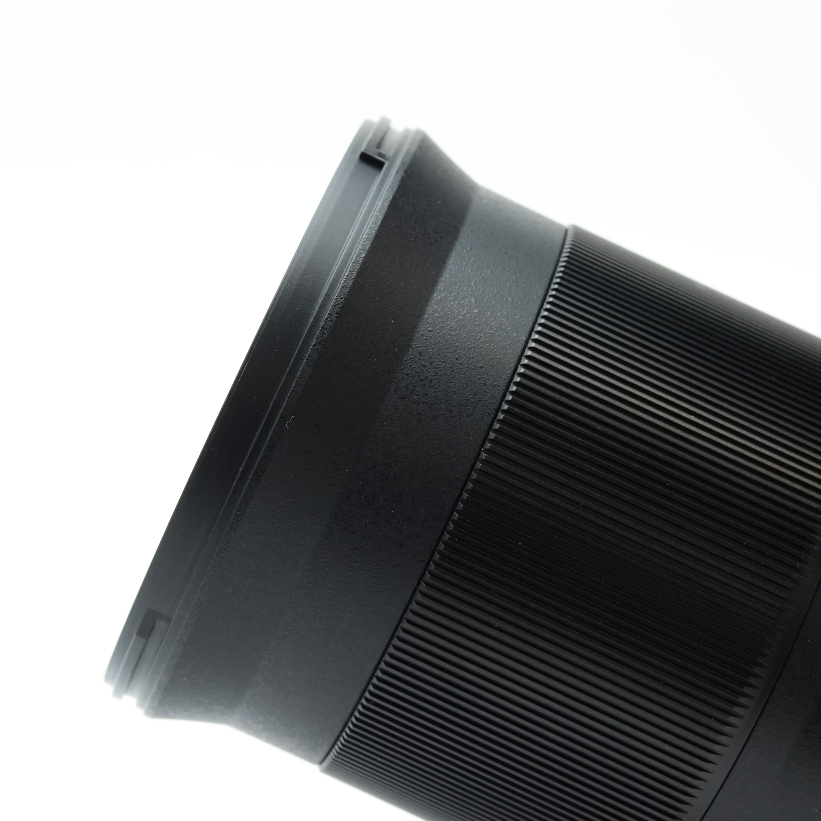 【外観】フード着脱に伴う僅かなスレ、フォーカスリングや根元にキズによる僅かな塗装剥げが生じていますが、全体的に綺麗な状態の中古品です。