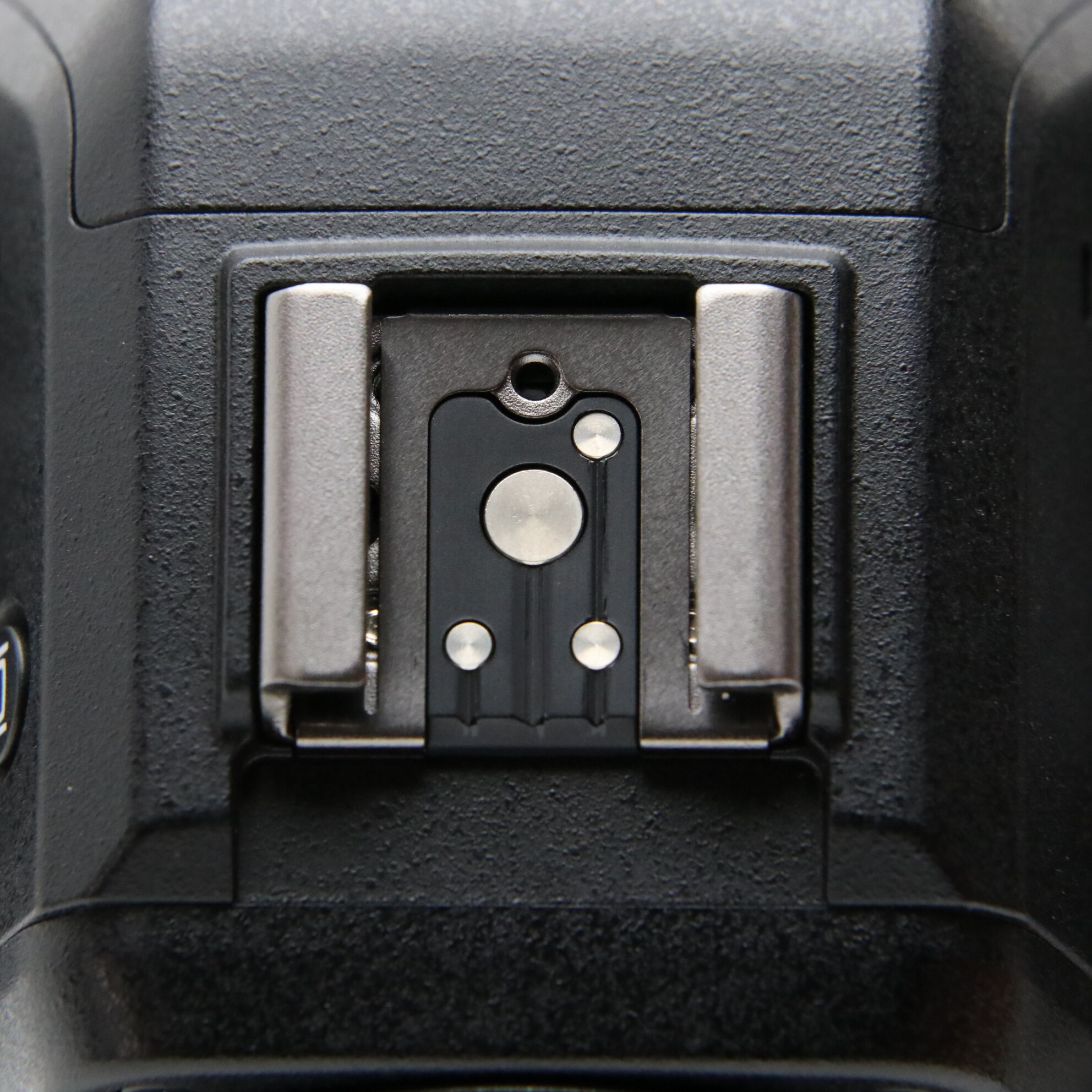 アクセサリーシュー:ホットシュー(ISO 518):シンクロ接点、通信接点、セーフティーロック機構(ロック穴)付