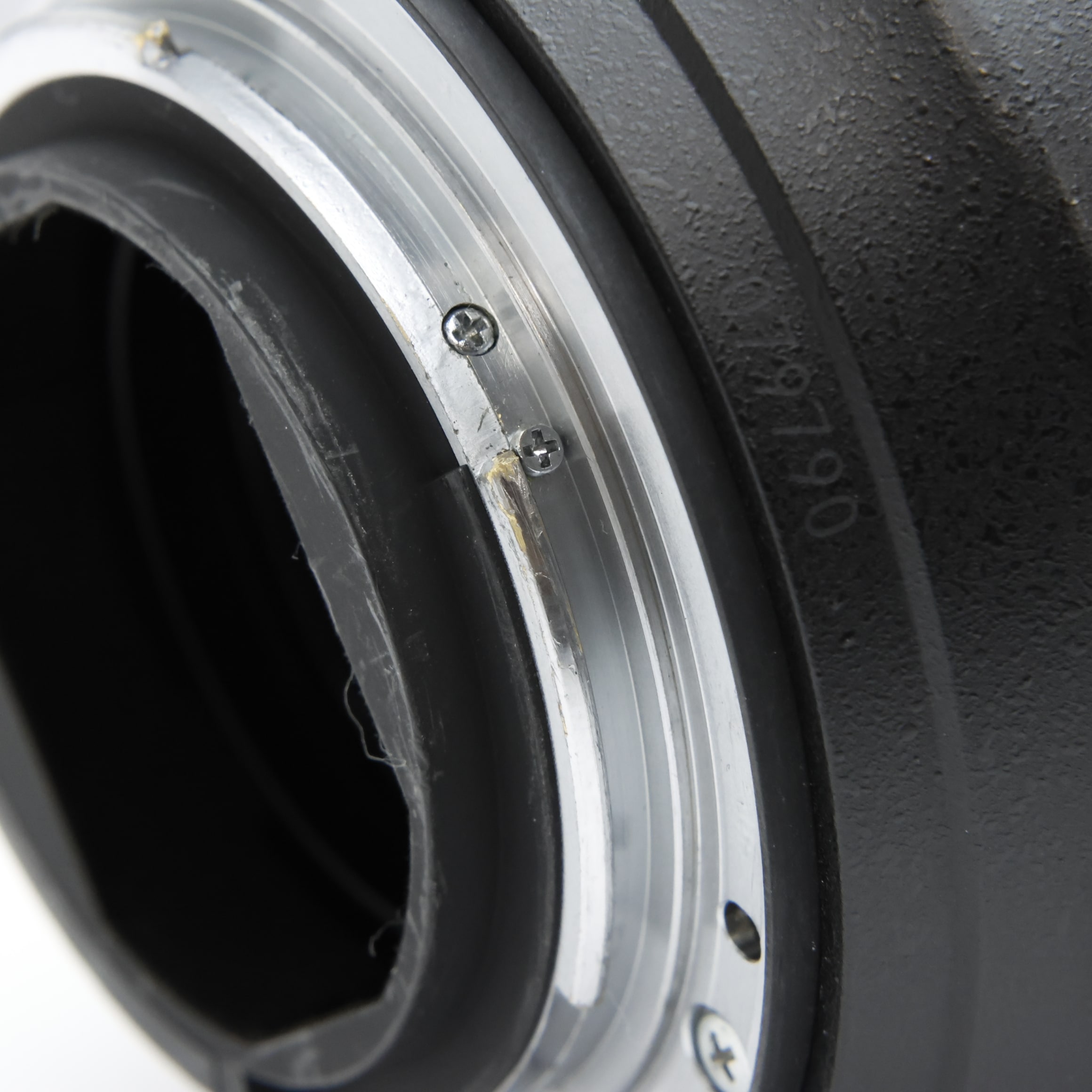 【外観】銘板にアタリキズによる痛み、スイッチ部にテカリがあるほか、フォーカスリングラバーをつよく摘まむと浮きが生じますが、ピント送りなどの通常動作には影響を及ぼさない範囲内で、全体的なコンディションは良好です。