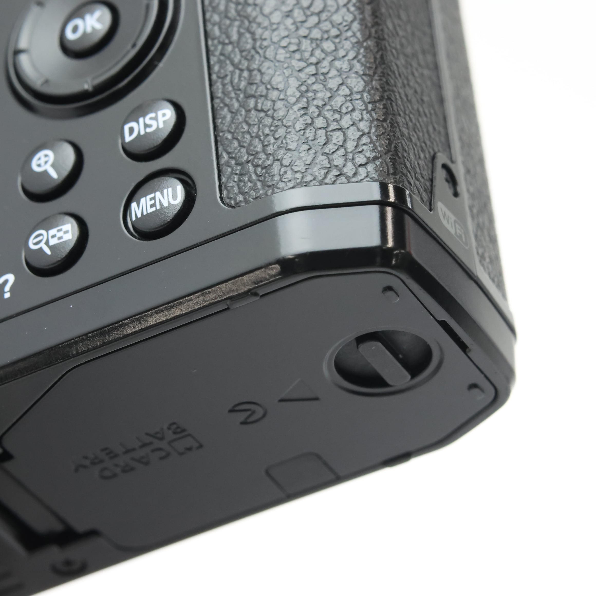 【外観】カメラボディの上部表示窓近くの角に細かいキズあります。底面にスレや多少のキズ見受けられます。付属レンズの外観コンディション良好です。