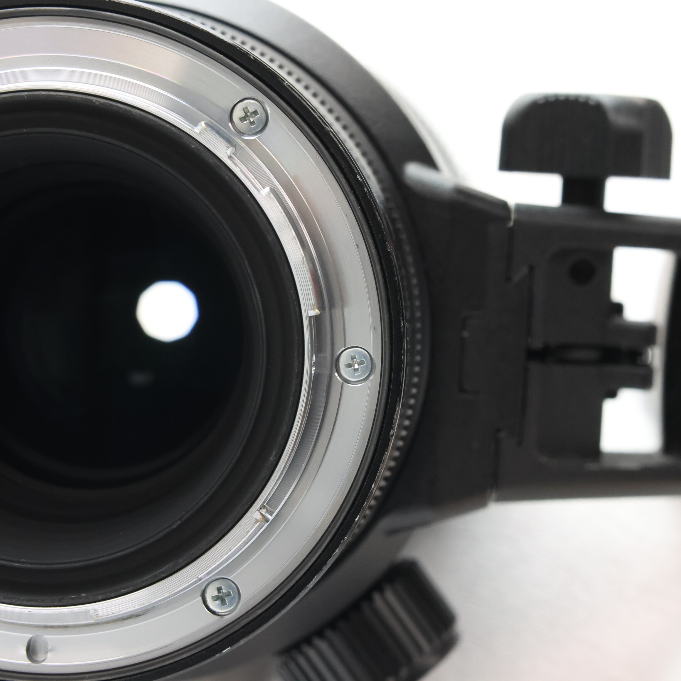 【外観】フード取り付け部にスレ、コントロールリング・鏡胴後側・三脚座にスレキズ/塗装はがれがありますが、実用品としておすすめの商品です。