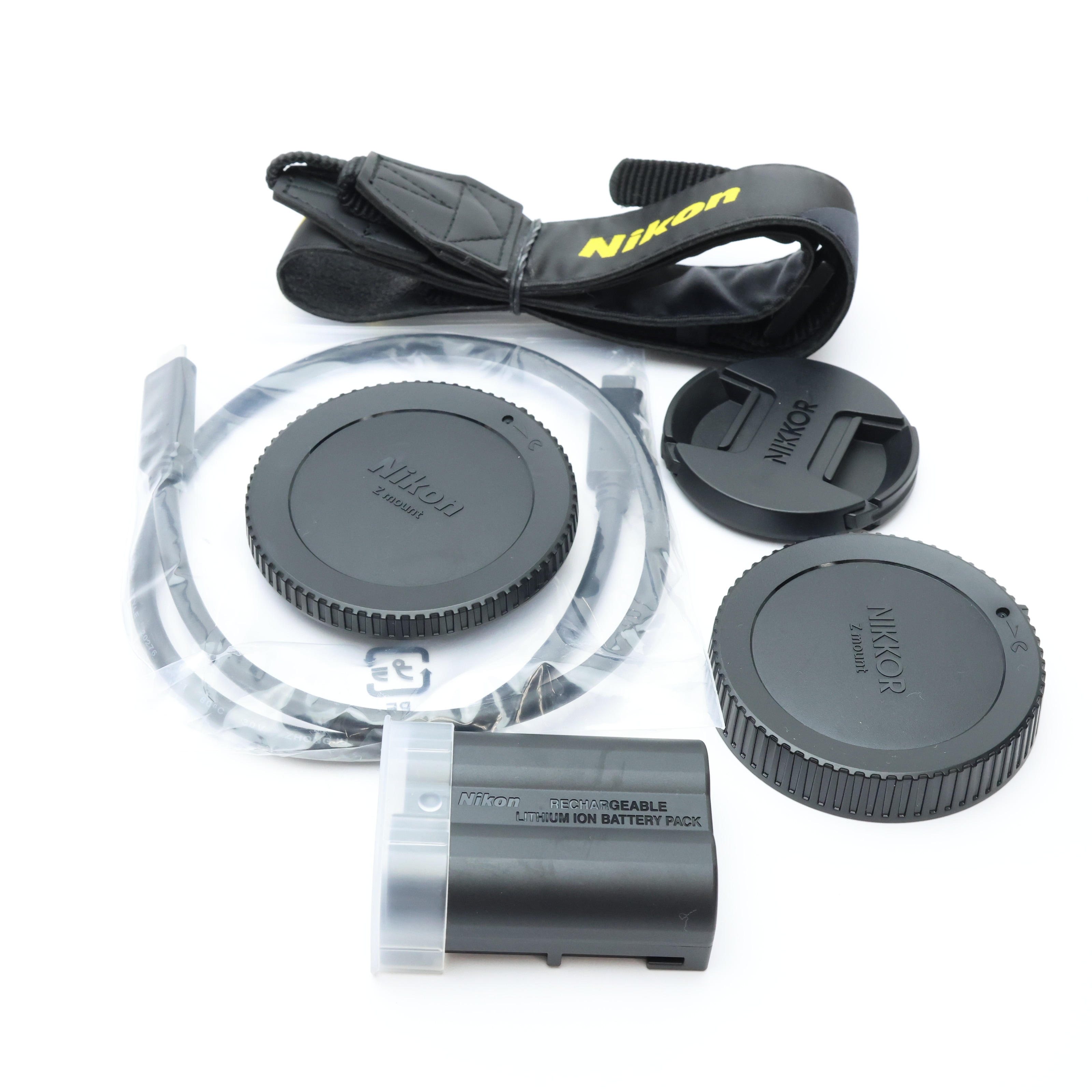 取扱説明書・バッテリー・ストラップ・USBケーブル・レンズフロントキャップ・レンズリアキャップ