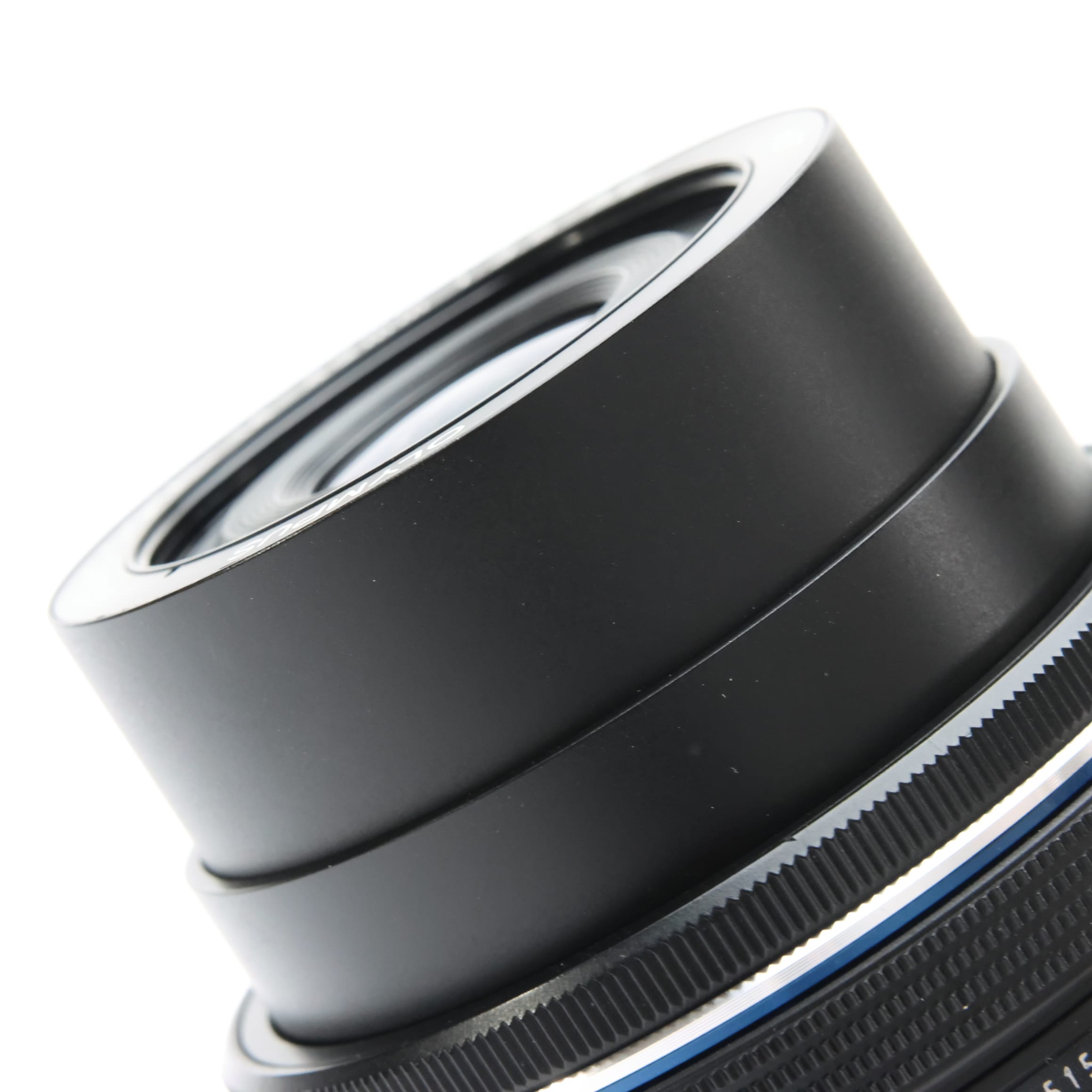 ズームリングの回転角度で行う2段階可変速※ のズーム機能が搭載されています。どの様なカメラの構え方でもマニュアルフォーカスとズームが行いやすいように、レンズ全周にフォーカスリングとズームリングを配置しました。その上、カメラ本体のOn/Offに連動して沈胴位置から撮影位置になるなど、思い切った小型化を進めながらもユーザビリティを徹底的に追求しています。