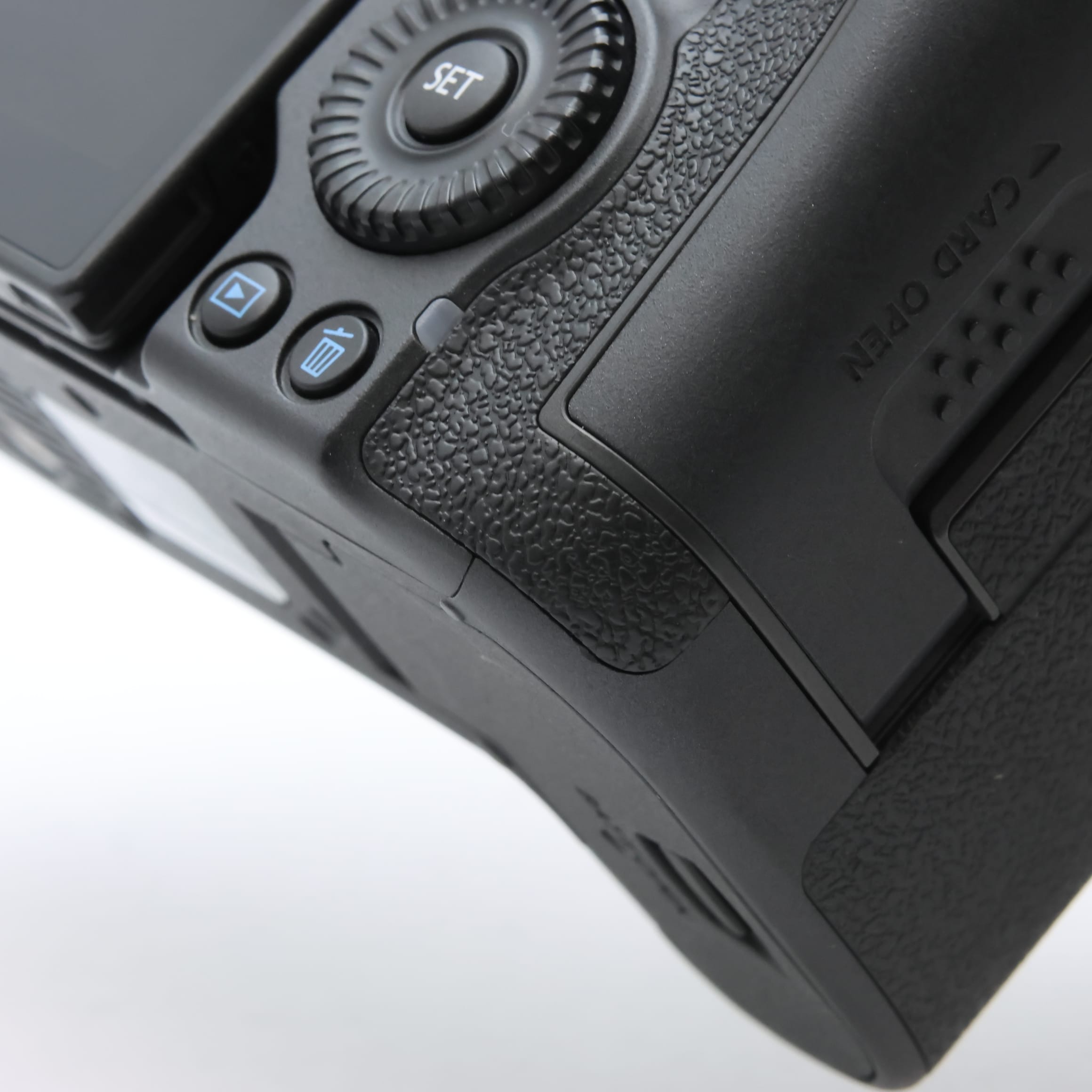 【外観】ストラップ環周囲や液晶モニターヒンジに僅かにテカリ箇所が生じていますが、全体的に丁寧に使用されている中古品です。