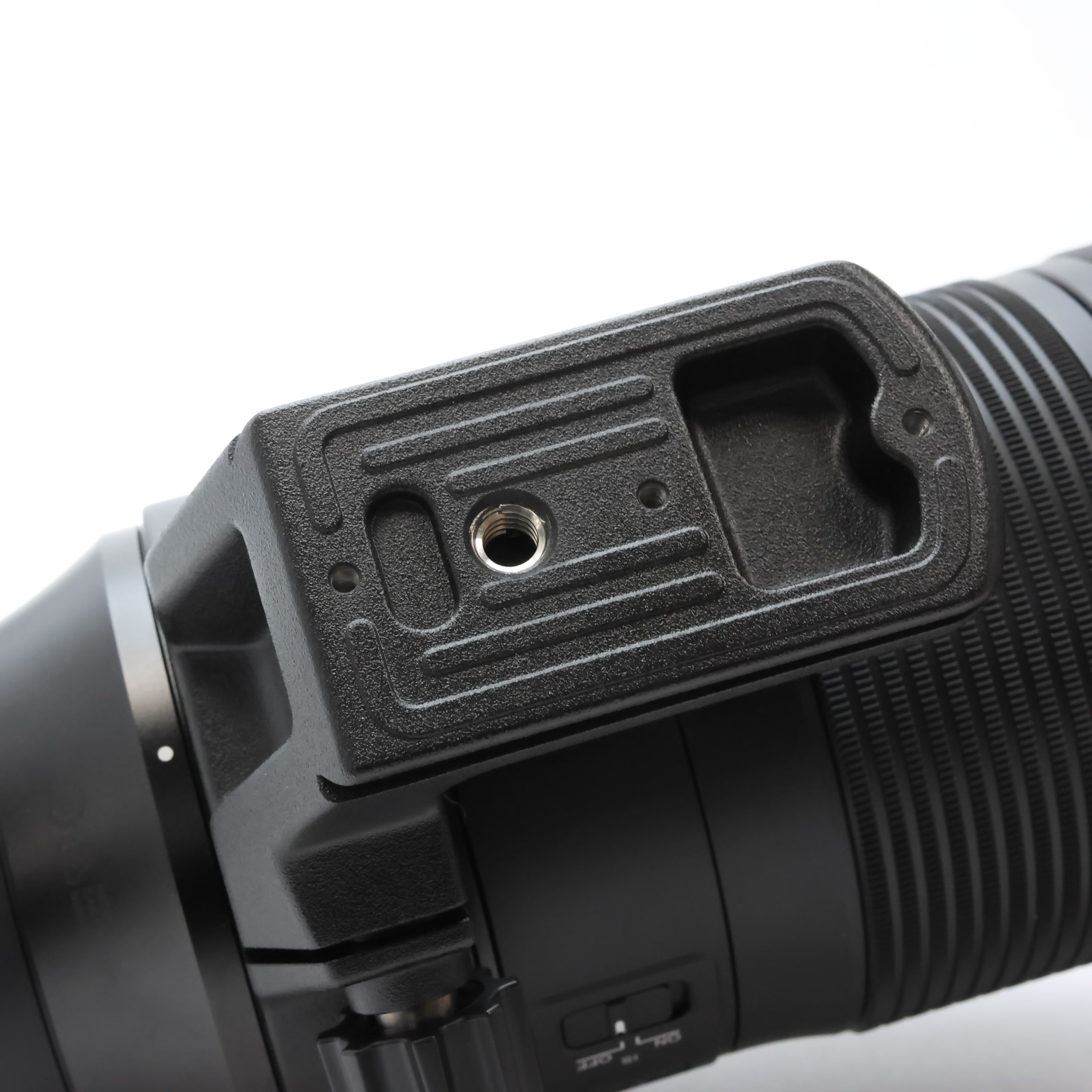 新設計の三脚座は、カメラをレンズに装着したままでも三脚座の着脱が可能です。また、レンズフットの形状は持ち易い形状とし、アルカスイスタイプのクランプに対応しています。