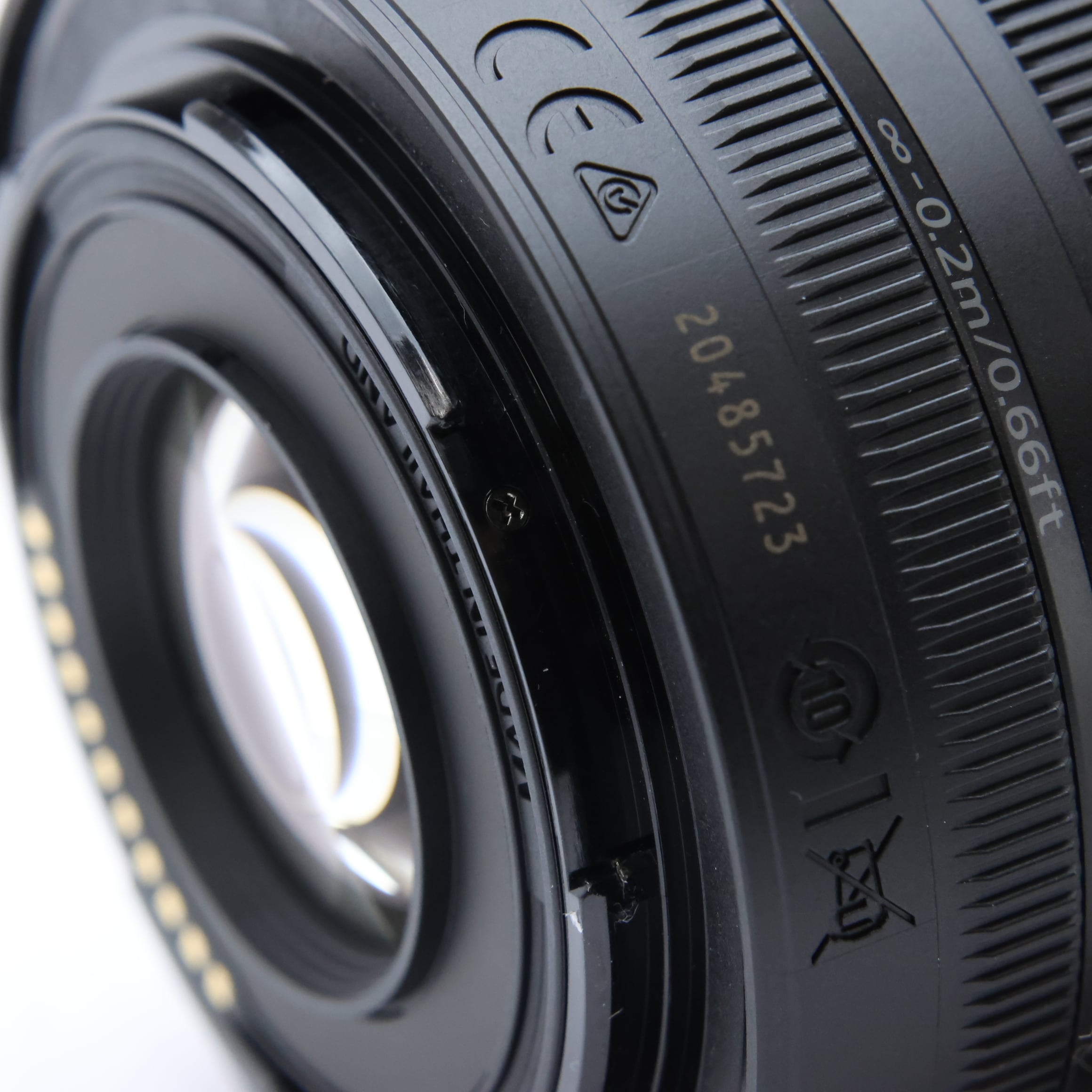 最短撮影距離:0.25m(焦点距離16mm)、0.2m(焦点距離24mm)、0.23m(焦点距離35mm)、0.3m(焦点距離50mm)