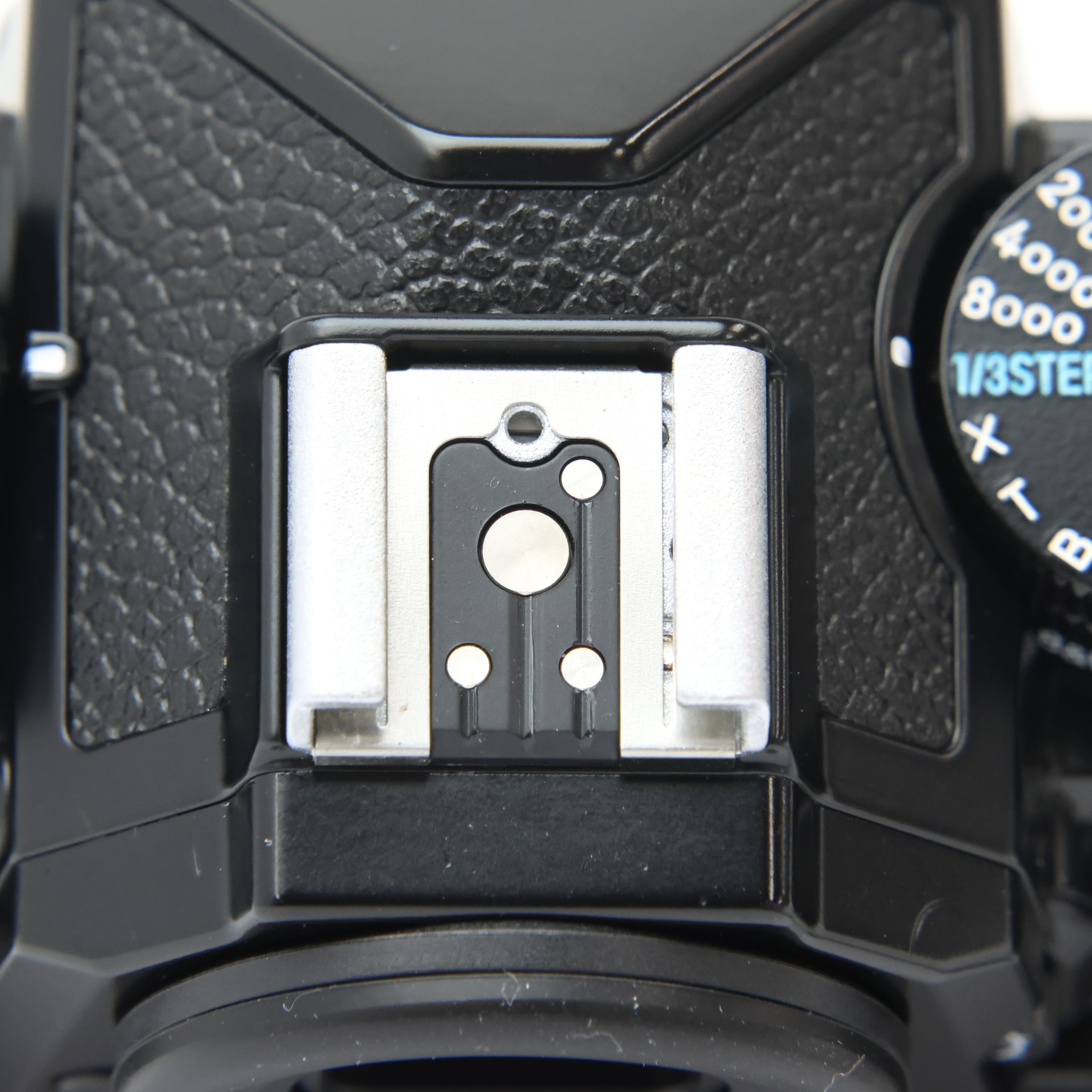 アクセサリーシュー:ホットシュー(ISO 518):シンクロ接点、通信接点、セーフティーロック機構(ロック穴)付