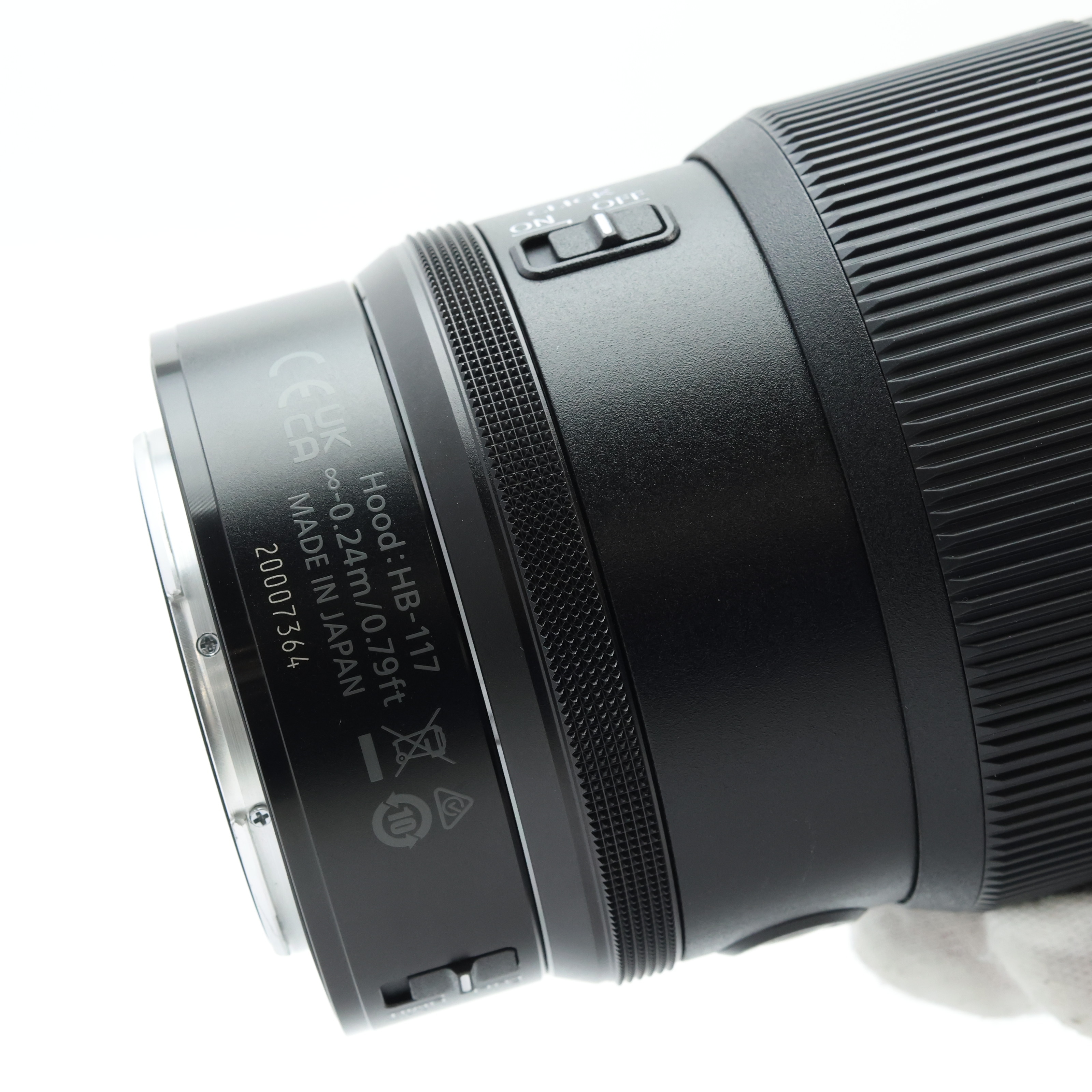 様々な機能が割り当てられるL-Fnボタンを、レンズの側面と上面に配置。上面のL-Fnボタンは、縦位置撮影時にスムーズな操作を可能にします。またフォーカス制限切り換えスイッチにより、ピント合わせを実行する範囲を0.33m以上に制限可能。ズーミングを行っても最短撮影距離が変わらず、ワーキングディスタンスを一定に保つことができるため、カメラの位置を変えられない商品撮影や、ポジションを変えずに撮影したいポートレート撮影に便利です。